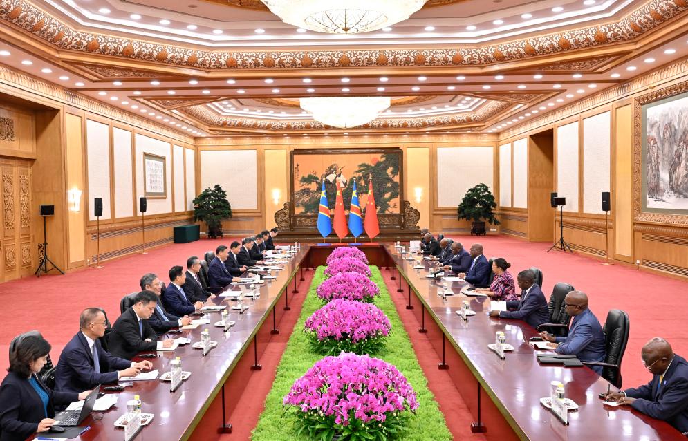 وأضاف أن الصين مستعدة لتعزيز الثقة السياسية المتبادلة والسعي إلى تحقيق التنمية المشتركة مع جمهورية الكونغو الديمقراطية، وتعميق التعاون الثنائي في مجالات مثل الزراعة ومعالجة المعادن والتدريب المهني، ومواصلة مساعدة جمهورية الكونغو الديمقراطية على تحويل مزاياها المتمثلة في مواردها إلى قوى محركة للنمو.