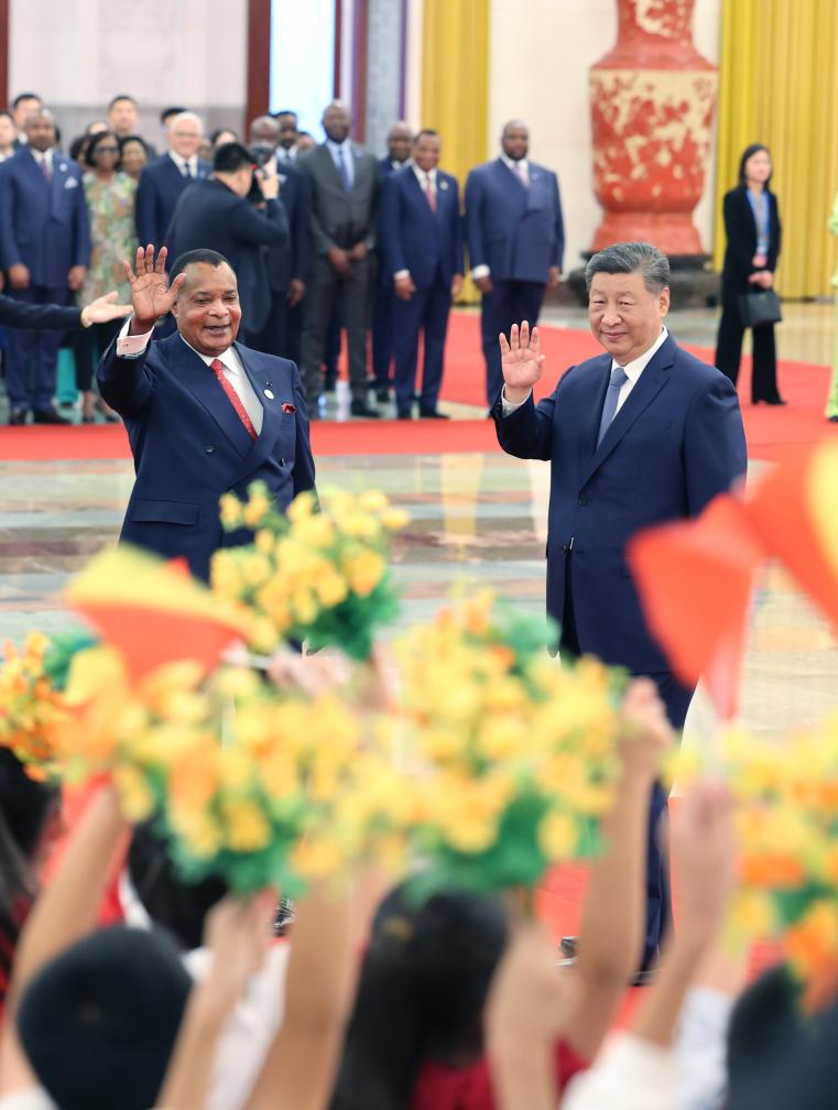 وأكد شي أن الصين ستعمل مع جمهورية الكونغو على الاضطلاع بدورهما القيادي بشكل أفضل باعتبارهما الرئيسين المشاركين لمنتدى التعاون الصيني-الإفريقي، وإظهار العزم الراسخ للصين وأفريقيا على البناء المشترك لمجتمع المستقبل المشترك للصين وإفريقيا في جميع الأحوال خلال العصر الجديد.