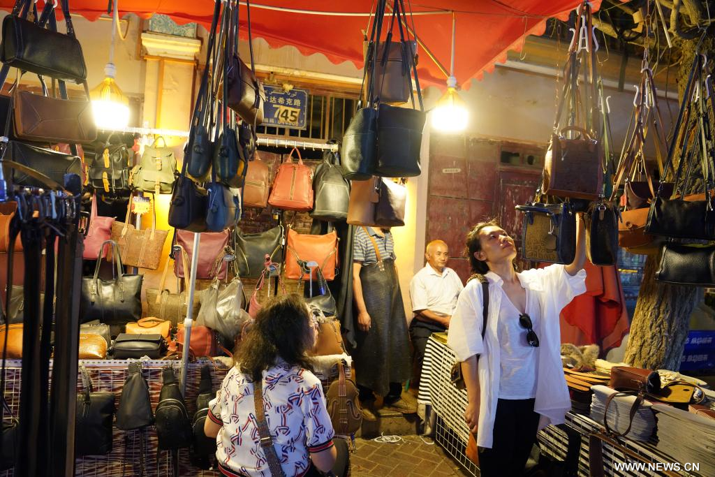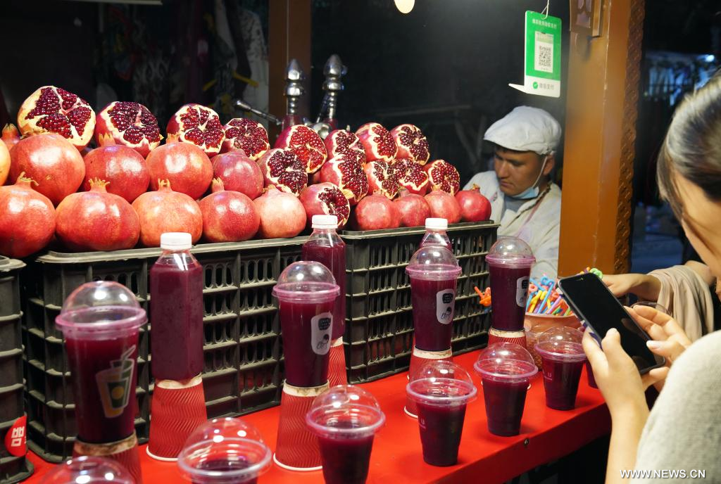 كاشغار 25 سبتمبر 2024 (شينخوا) في الصورة الملتقطة يوم 19 سبتمبر 2024، منظر ليلي لسوق في مدينة كاشغار القديمة في منطقة شينجيانغ الويغورية ذاتية الحكم بشمال غربي الصين. وتتمتع مدينة كاشغار القديمة، وهي محطة مهمة على طريق الحرير القديم، بآثار تاريخية وثقافية غنية.