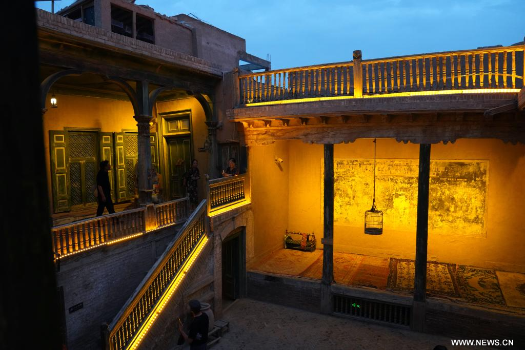 كاشغار 25 سبتمبر 2024 (شينخوا) في الصورة الملتقطة يوم 19 سبتمبر 2024، منظر ليلي لمنزل أثري في مدينة كاشغار القديمة في منطقة شينجيانغ الويغورية ذاتية الحكم بشمال غربي الصين. وتتمتع مدينة كاشغار القديمة، وهي محطة مهمة على طريق الحرير القديم، بآثار تاريخية وثقافية غنية.