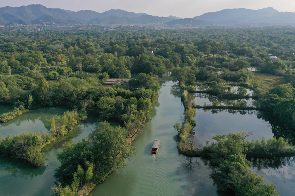 هانغتشو 25 أكتوبر 2024 (شينخوا) في الصورة الملتقطة جوا يوم 24 أكتوبر 2024، منظر خريفي لحديقة شيشي الوطنية للأراضي الرطبة في مدينة هانغتشو في مقاطعة تشجيانغ شرقي الصين.