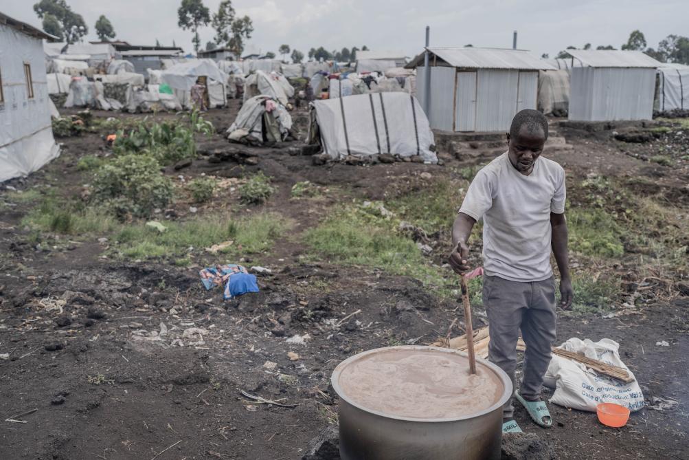 رجل يقوم بإعداد الطعام في مخيم للاجئين في ضواحي غوما بمقاطعة كيفو الشمالية بجمهورية الكونغو الديمقراطية في 8 فبراير 2024. (شينخوا)