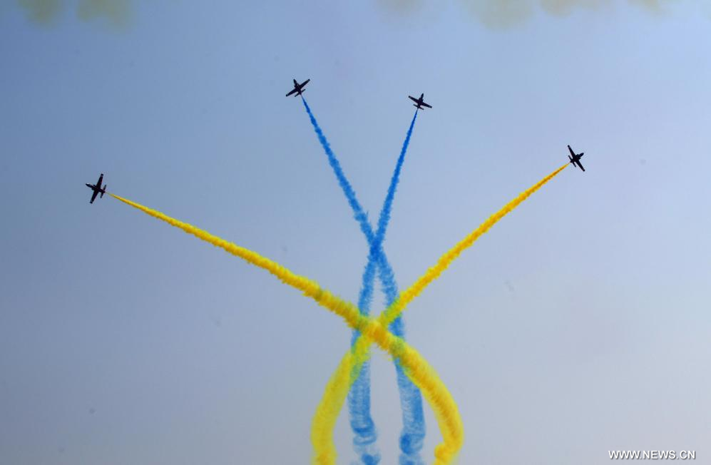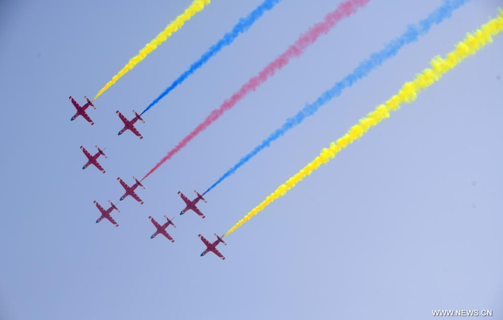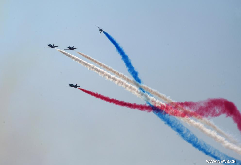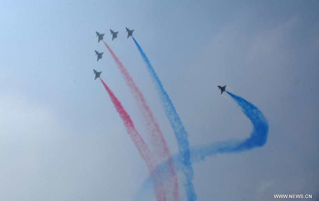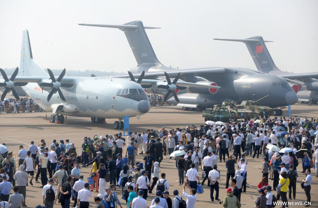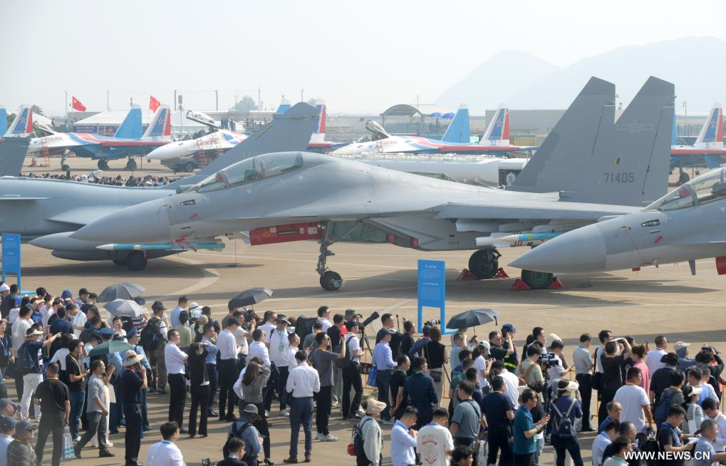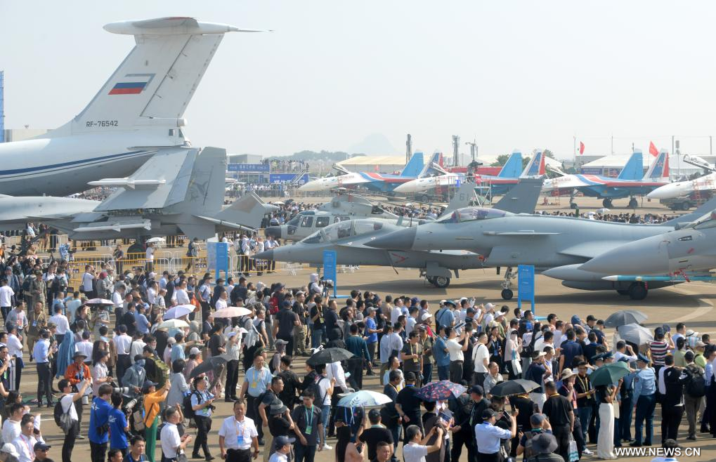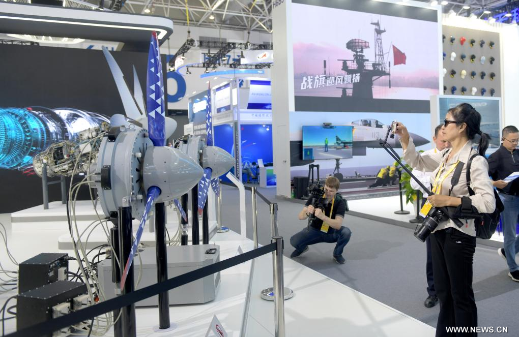 وكشف في المعرض الجوي النقاب عن المقاتلة "جيه-15 تي" والطائرة الحربية الإلكترونية "جيه-15 دي" وطائرة الهليكوبتر "زي-20 جيه". وتعتبر هذه الطائرات من بين أحدث المعدات القتالية الرئيسية في الخدمة الفعلية للبحرية الصينية، وتشكل أسلحة أساسية لمجموعات الحاملات والسفن البرمائية.