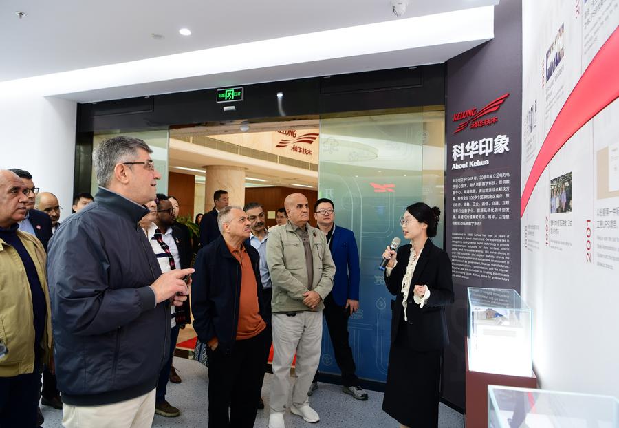 شيامن 2 ديسمبر 2024 (شينخوا) في الصورة الملتقطة يوم 29 نوفمبر 2024، أعضاء وفد من الدبلوماسيين العرب المعتمدين لدى الصين يزورون شركة كهوا المحدودة للبيانات في مدينة شيامن بمقاطعة فوجيان جنوب شرقي الصين.