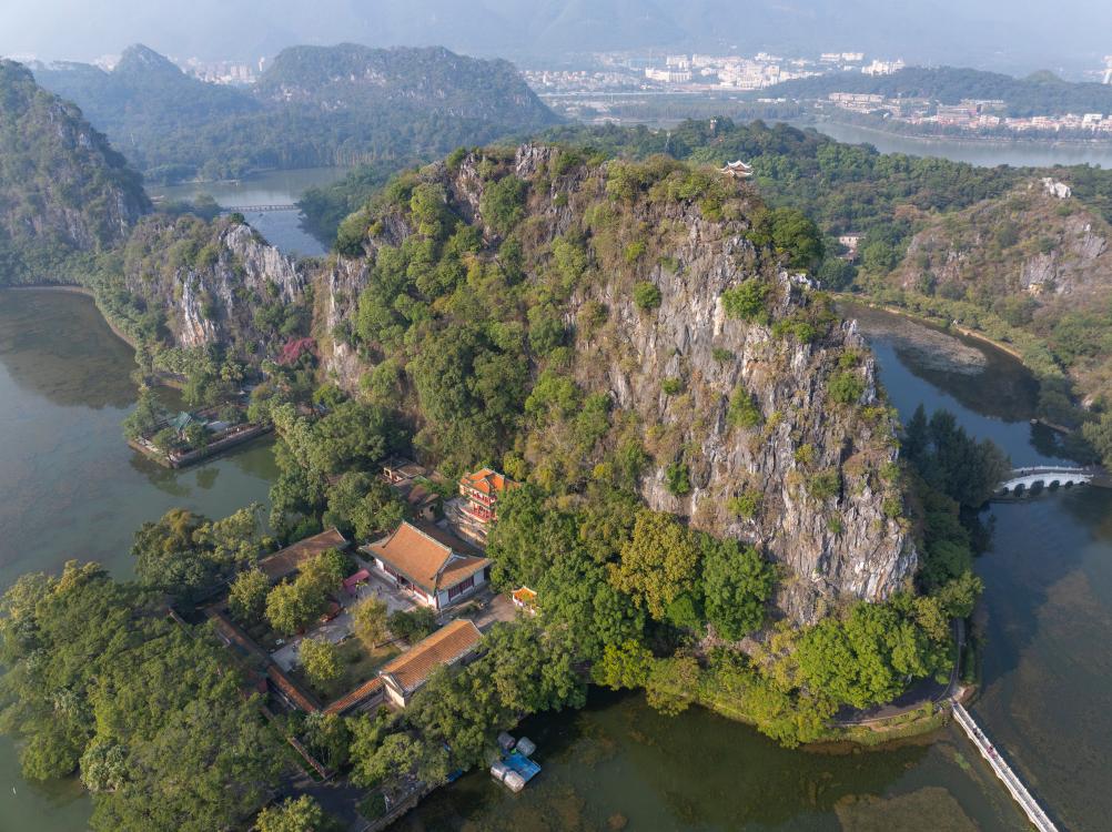 تشاوتشينغ 4 ديسمبر 2024 (شينخوا) في الصورة الملتقطة جوا يوم 2 ديسمبر 2024، مشهد لمنظر طبيعي خلاب في تشيشينغيان في منطقة شينغهو السياحية في مدينة تشاوتشينغ بمقاطعة قوانغدونغ بجنوبي الصين. وتعد شينغهو منطقة سياحية من الفئة "5-أيه" على المستوى الوطني، حيث تشتهر بمناظرها الطبيعية البديعة ونقوش منحدراتها الغنية التي ترجع إلى عهد أسرة تانغ الإمبراطورية (618-907م)، فضلا عن مجموعة متنوعة من النباتات والحيوانات النادرة.