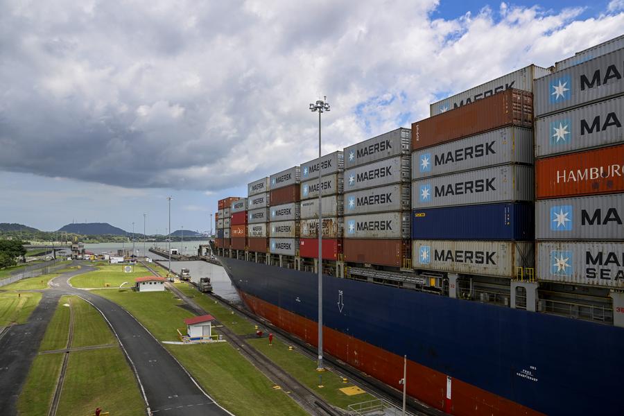 سفينة شحن تبحر عبر أهوسة ميرافلوريس في قناة بنما بالقرب من مدينة بنما سيتي في بنما بتاريخ 28 أغسطس 2024. (شينخوا)