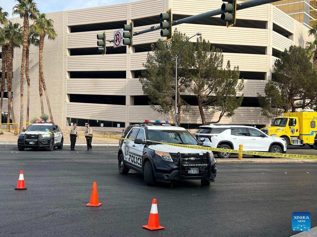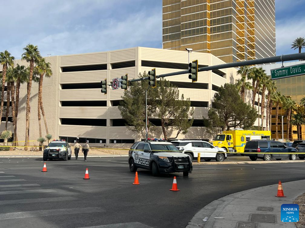 لوس أنجليس أول يناير 2025 (شينخوا) قتل شخص وأصيب سبعة آخرون يوم الأربعاء جراء انفجار سيارة من طراز تيسلا سايبرتراك خارج فندق ترامب في لاس فيغاس، حسبما ذكرت وسائل الإعلام المحلية.