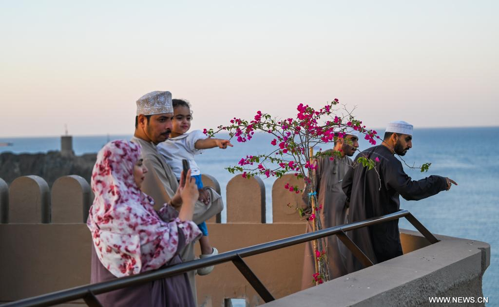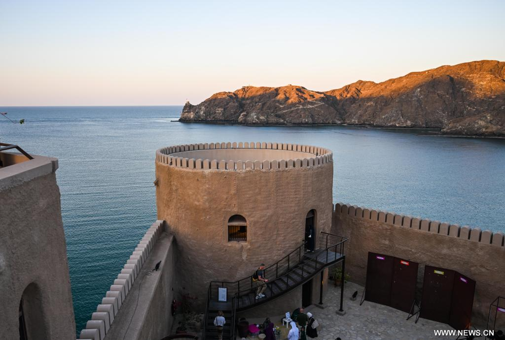 مسقط 15 يناير 2025 (شينخوا) في الصورة الملتقطة يوم 12 يناير 2025، سياح يزورون قلعة الميراني (حصن الميراني) في مدينة مسقط بعمان. ويرجع تاريخ قلعة الميراني إلى القرن الـ16. وقد أصبحت الآن من أبرز المعالم السياحية في عمان.