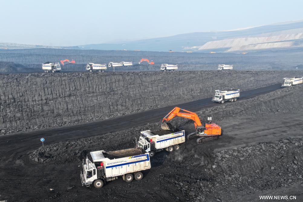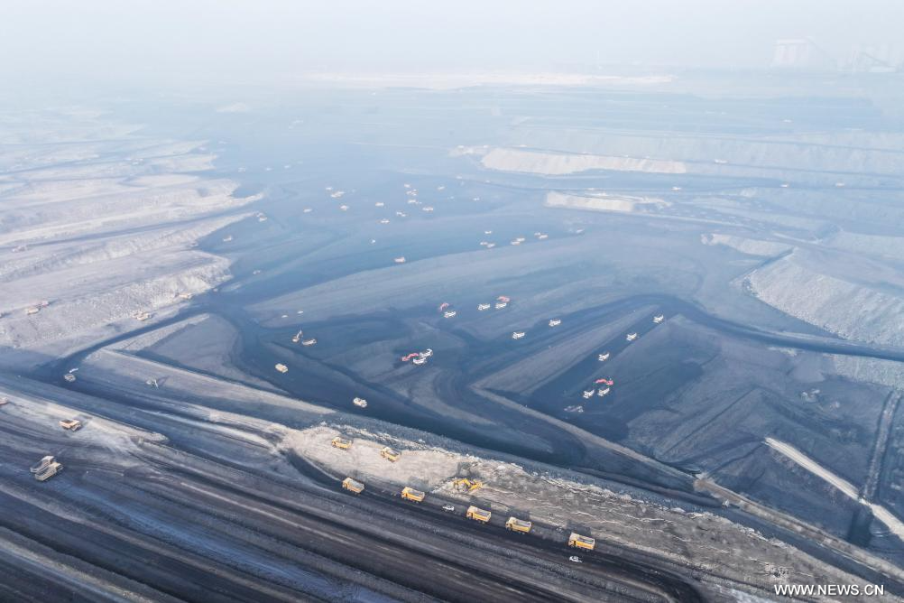 أورومتشي 23 يناير 2025 (شينخوا) في الصورة الملتقطة جوا يوم 20 يناير 2025، منجم فحم مفتوح في منطقة تشوندونغ للتنمية الاقتصادية والتكنولوجية بمنطقة شينجيانغ الويغورية ذاتية الحكم شمال غربي الصين. ومن خلال زيادة عدد قطارات الشحن وسرعتها وحمولتها علاوة على تدابير أخرى، بذلت سلطات السكك الحديدية المحلية كل جهد ممكن لضمان نقل الفحم بكفاءة خلال عيد الربيع القادم.