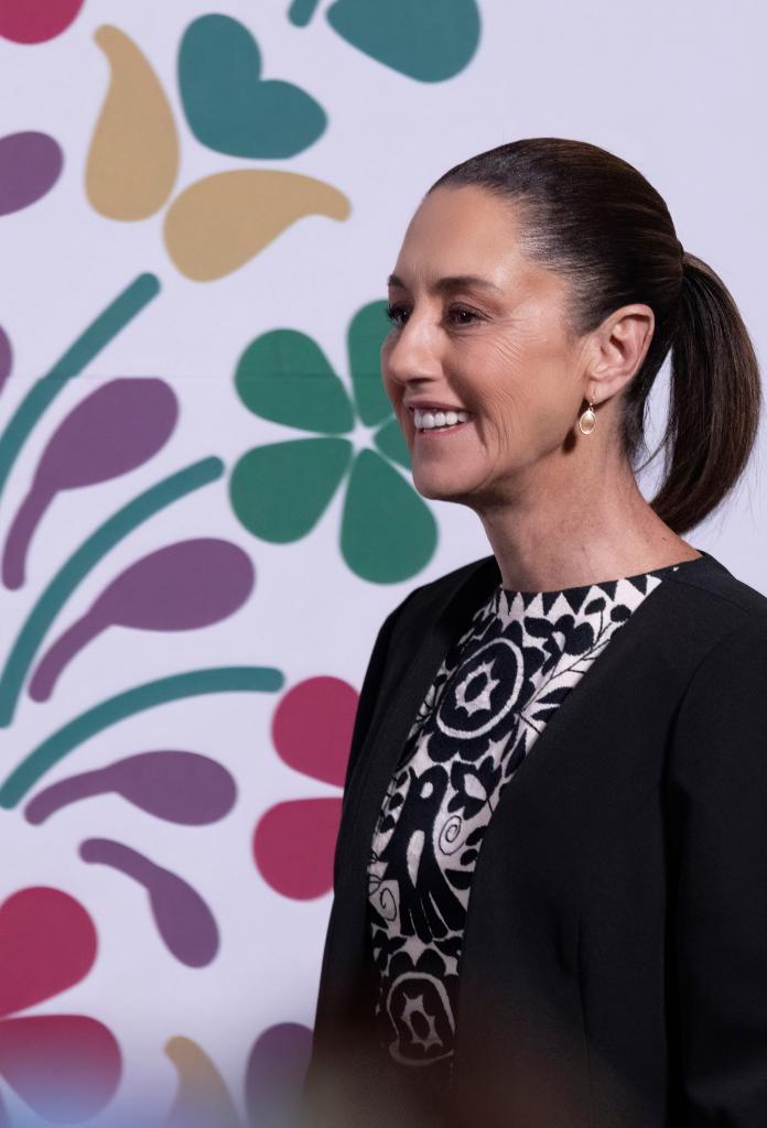 صورة مقدمة من الرئاسة المكسيكية تظهر رئيسة المكسيك كلوديا شينباوم خلال مؤتمر صحفي صباحي في القصر الوطني في مكسيكو سيتي يوم 21 يناير 2025. (نُشر عبر شينخوا)