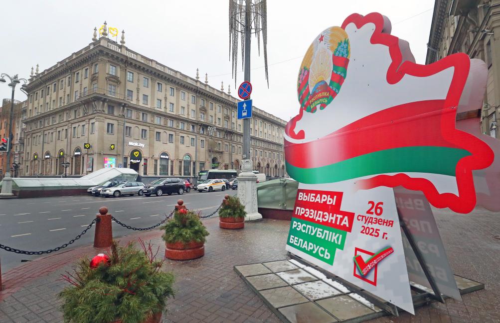 صورة تظهر لوحة إعلانية للانتخابات الرئاسية في أحد شوارع مينسك في بيلاروسيا بتاريخ 14 يناير 2025. (شينخوا)