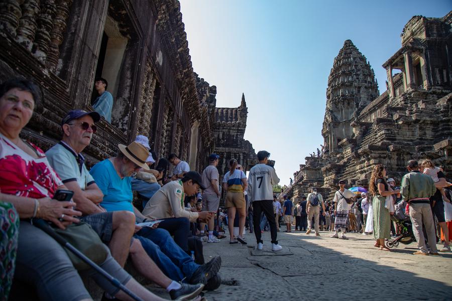سياح يزورون معبد أنغكور وات في متنزه أنغكور الأثري المدرج في قائمة اليونسكو للتراث العالمي، في مقاطعة سيام ريب، كمبوديا يوم 29 يناير 2025.■