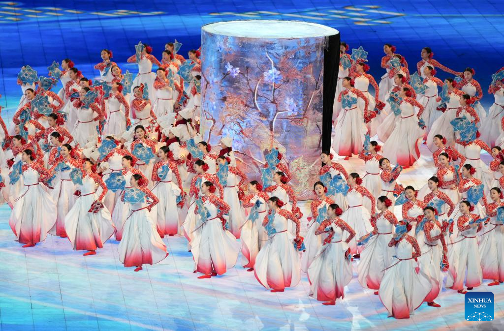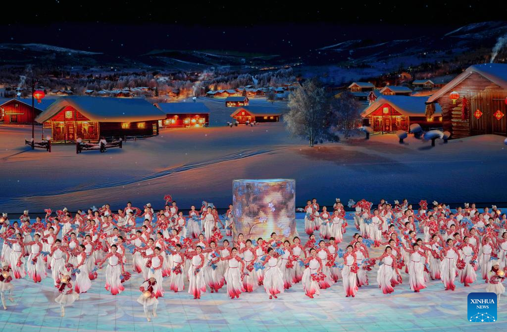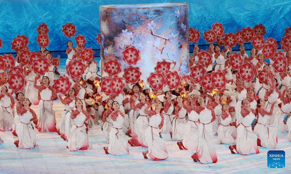هاربين 7 فبراير 2025 (شينخوا) افتتح الرئيس الصيني شي جين بينغ دورة الألعاب الآسيوية الشتوية التاسعة في هاربين الليلة (الجمعة) خلال مراسم احتفالية أبرزت ثقافة الجليد والثلج في المدينة.