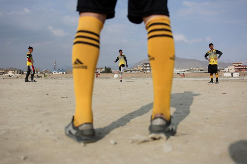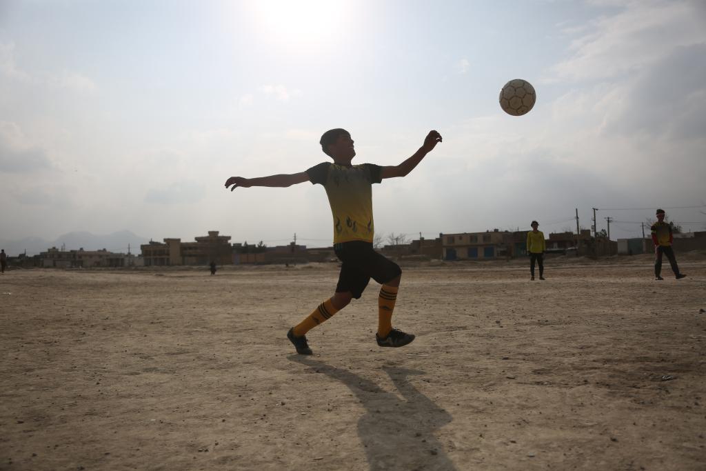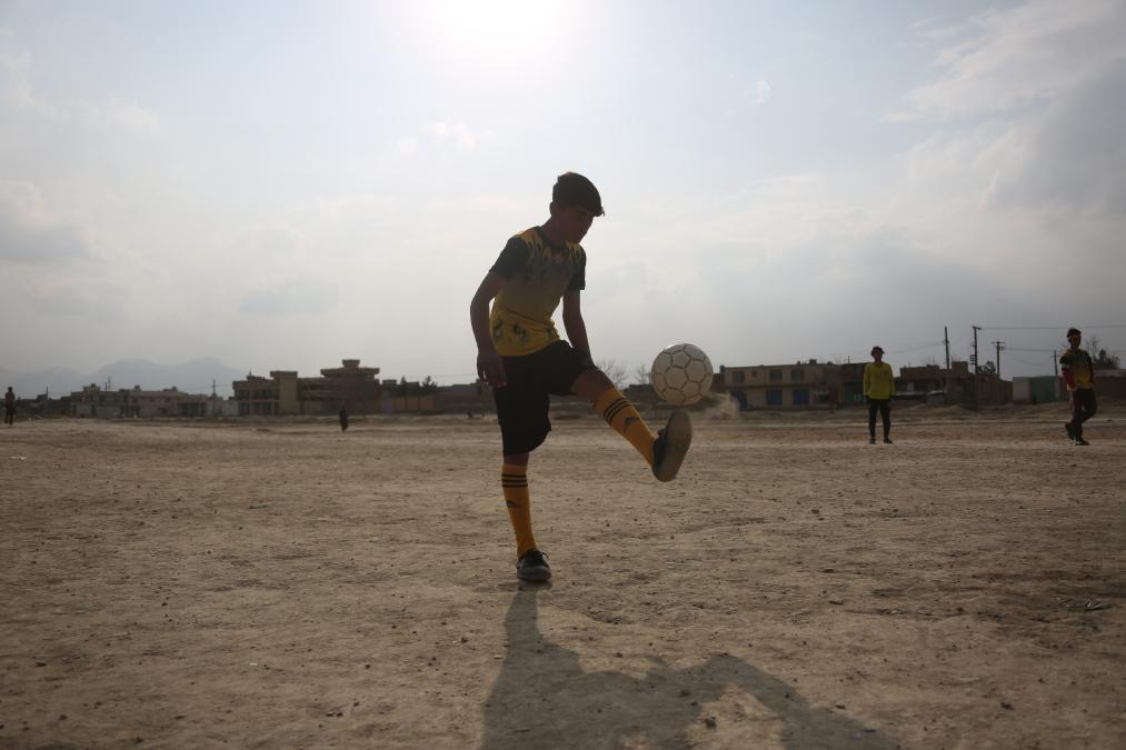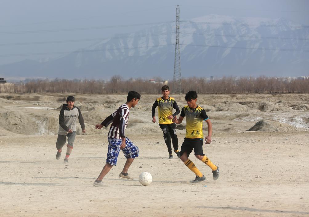 كابول 9 فبراير 2025 (شينخوا) في الصورة الملتقطة يوم 9 فبراير 2025، فتيان أفغان يلعبون مباراة لكرة القدم على أرض ترابية في العاصمة الأفغانية كابول.