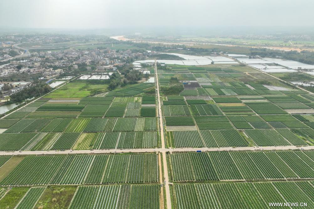 هايكو 21 فبراير 2025 (شينخوا) في الصورة الملتقطة يوم 19 فبراير 2025، حقول الطماطم الكرزية في قرية تانلي بمحافظة دينغآن في مقاطعة هاينان بجنوبي الصين.