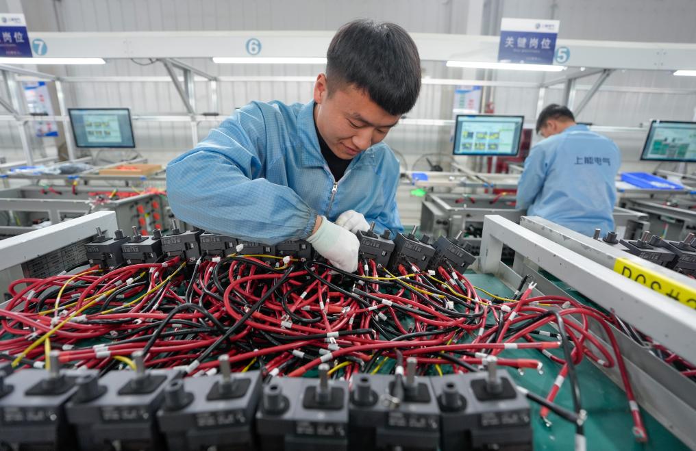 تونغشين 22 فبراير 2025 (شينخوا) في الصورة الملتقطة يوم 20 فبراير 2025، عاملان يقومان بتجميع عاكسات في مجمع صناعي في محافظة تونغشين بمدينة ووتشونغ في منطقة نينغشيا ذاتية الحكم لقومية هوي بشمال غربي الصين.