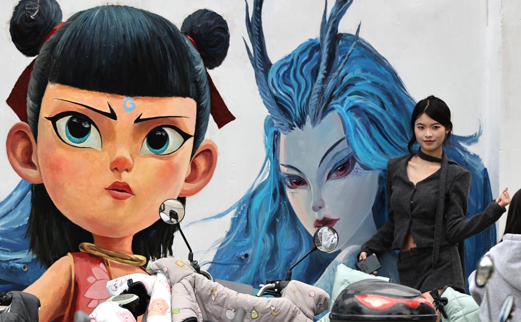 لوحة جدارية لفيلم الرسوم المتحركة الشهير "نه تشا 2" في وسط الصين