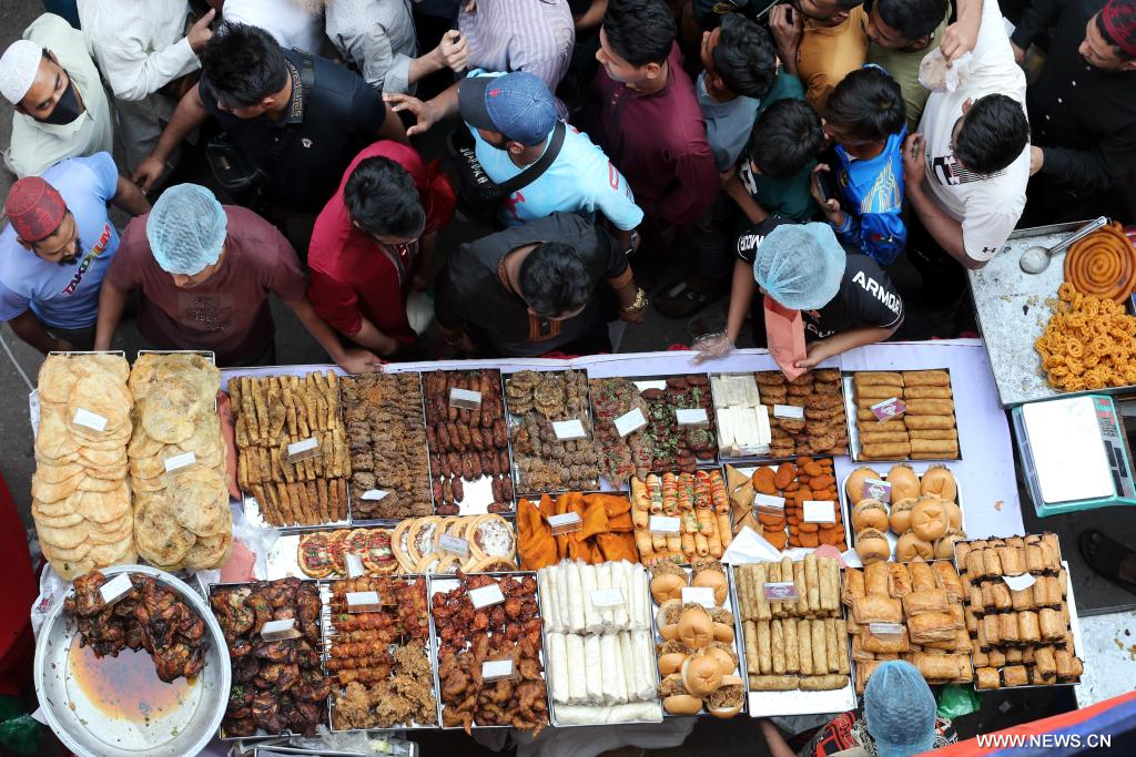 دكا 3 مارس 2025 (شينخوا) في الصورة الملتقطة يوم 2 مارس 2025، بائعون للمأكولات في سوق في اليوم الأول من شهر رمضان في دكا، بنجلاديش.