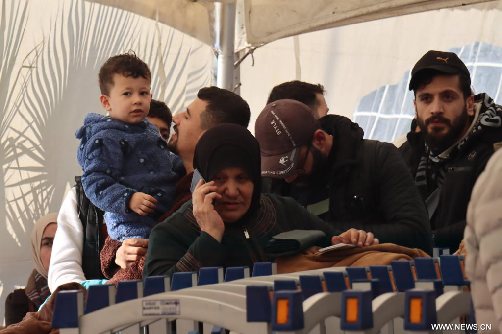 غازي عنتاب 17 مارس 2025 (شينخوا) في الصورة الملتقطة يوم 17 مارس 2025، سوريون يستعدون لدخول بلادهم من تركيا عند معبر جيلفا غوزو الحدودي في منطقة ريحانلي بمقاطعة هاتاي في تركيا.