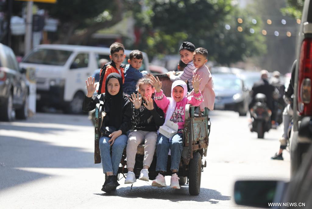 بيروت 31 مارس 2025 (شينخوا) في الصورة الملتقطة يوم 30 مارس 2025، أطفال يلعبون في الشارع ويستمتعون بالأجواء الاحتفالية في أول أيام عيد الفطر في العاصمة اللبنانية بيروت.