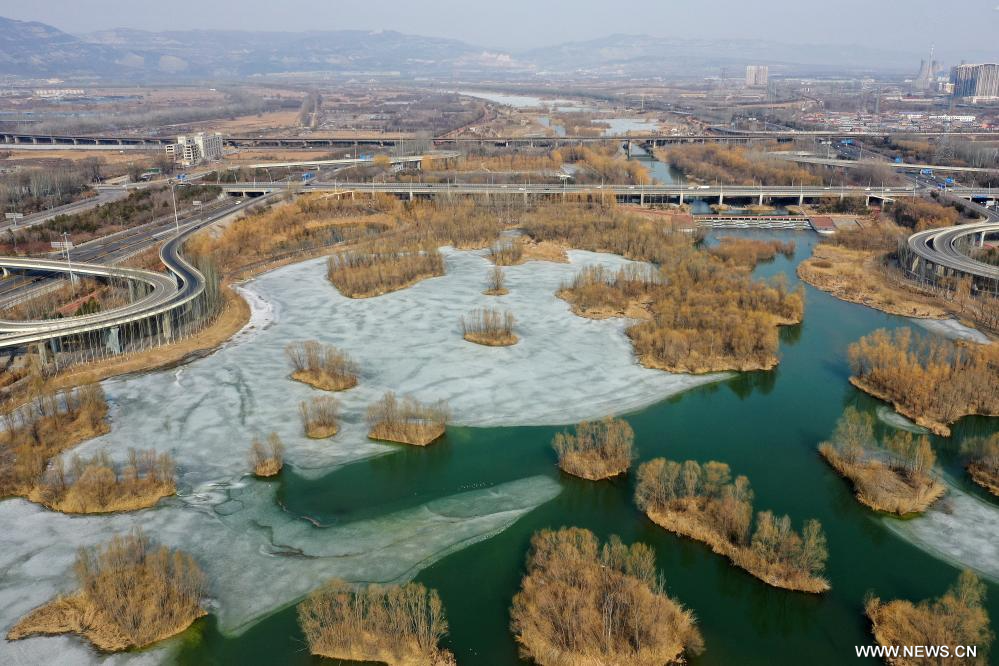 تاييوان 2 أبريل 2025 (شينخوا) في الصورة الملتقطة جوا يوم 19 فبراير 2025، جانب من أرض رطبة لنهر فنخه في مدينة تاييوان، حاضرة مقاطعة شانشي بشمالي الصين.