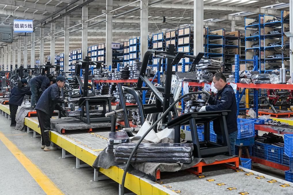 جينان 4 أبريل 2025 (شينخوا) في الصورة الملتقطة يوم 2 أبريل 2025، جانب من شركة لمعدات اللياقة البدنية في محافظة نينغجين بمقاطعة شاندونغ في شرقي الصين.