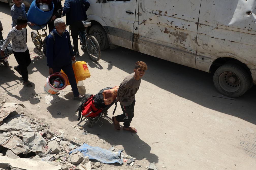 غزة 3 أبريل 2025 (شينخوا) في الصورة الملتقطة يوم 3 أبريل 2025، فلسطينيون يفرون من حي الشجاعية في مدينة غزة.