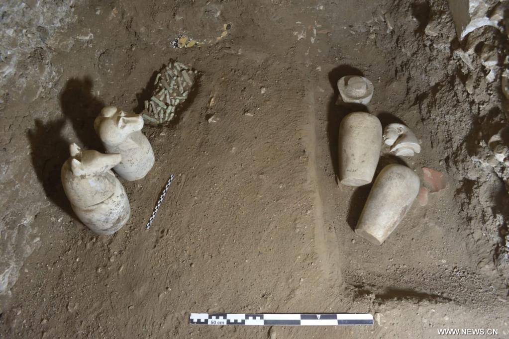 وأشارت إلى أن أعمال الحفائر بالمنطقة الشمالية الشرقية أسفرت عن وجود عدد كبير من المقابر التي تعود إلى عصر الانتقال الثالث، تحتوي معظمها على حجرات وآبار للدفن بها أواني كانوبية وأدوات جنائزية بحالة جيدة من الحفظ، بالإضافة إلى توابيت موضوعة داخل بعضها البعض، و401 تمثال من الأوشابتي المنحوت من الفخار ومجموعة من العظام المتناثرة.