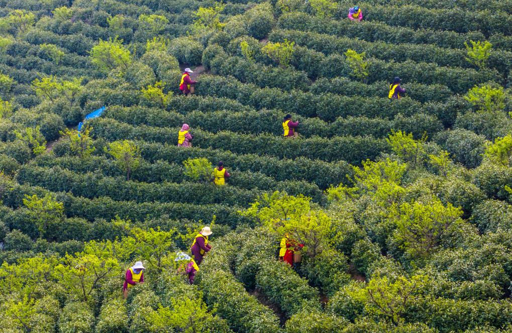 الصورة: حصاد الشاي الربيعي مع حلول عيد تشينغمينغ