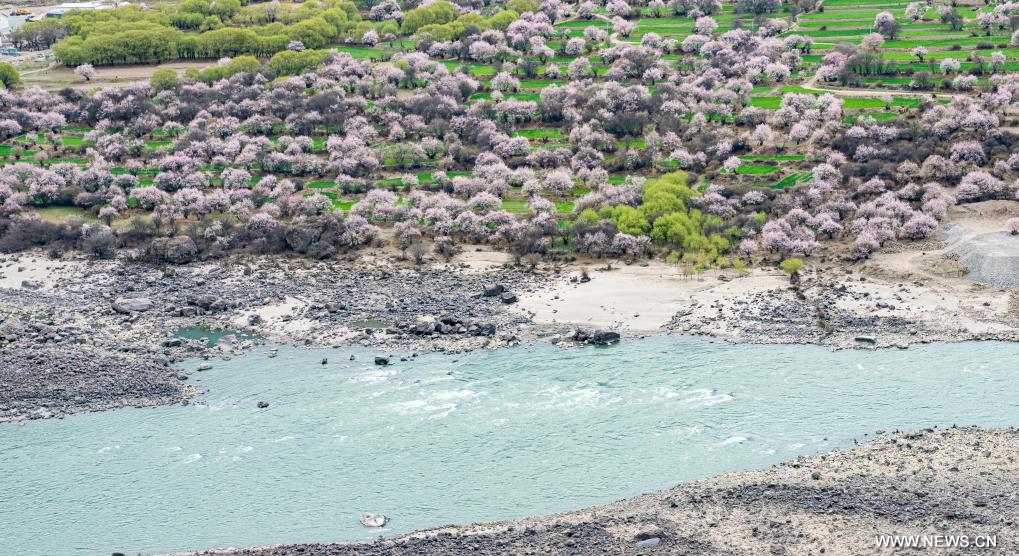 تفتح زهور الخوخ في نينغتشي بمنطقة شيتسانغ ذاتية الحكم في جنوب غربي الصين