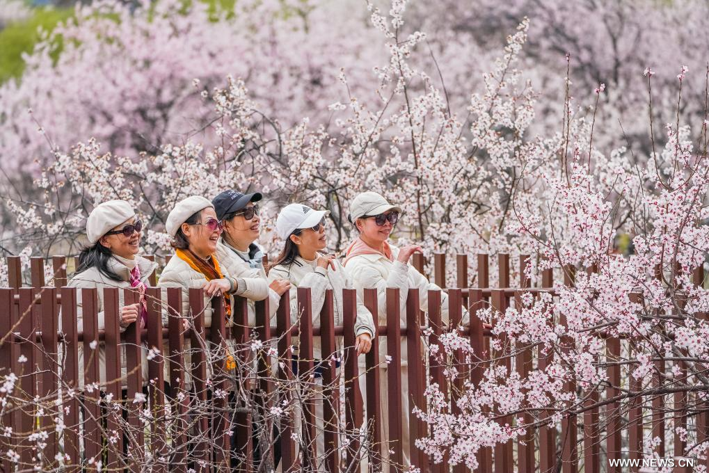 نينغتشي 5 أبريل 2025 (شينخوا) في الصورة الملتقطة يوم 4 أبريل 2025، سياح يستمتعون بتفتح زهور الخوخ في نينغتشي بمنطقة شيتسانغ ذاتية الحكم في جنوب غربي الصين. ومع ارتفاع درجات الحرارة، تتفتح زهور الخوخ في نينغتشي بالكامل ما يجذب الكثير من السياح.