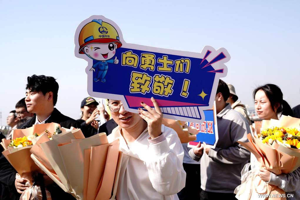 في الصورة الملتقطة يوم 8 أبريل 2025، أناس يستقبلون كاسحة الجليد البحثية الصينية "شيويهلونغ" أو "تنين الثلج" في رصيف قاعدة في بلدية شانغهاي بشرقي الصين. ووصلت الكاسحة إلى شانغهاي يوم الثلاثاء الماضي، ما مثل إكمال المهام الرئيسية للبعثة الاستكشافية الـ41 للبلاد في القطب الجنوبي.