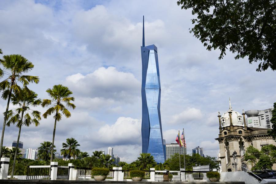 تظهر هذه الصورة الملتقطة في 11 أبريل 2025 برج "مرديكا 118" في كوالالمبور بماليزيا. (شينخوا)