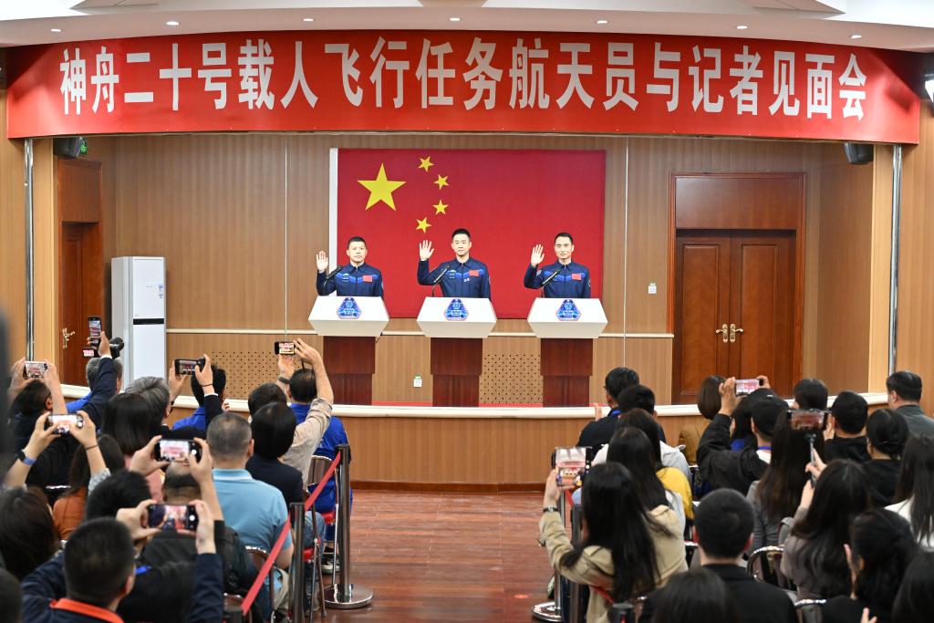 رواد فضاء مهمة "شنتشو-20" الصينية يلتقون بالصحافة