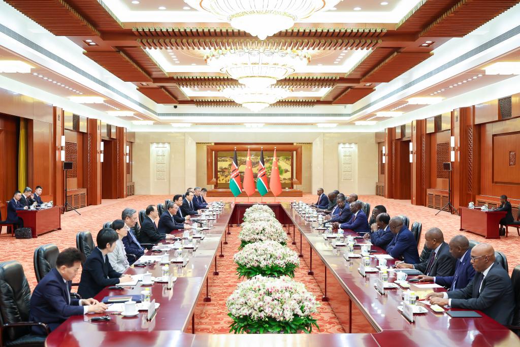 وفي سياق إشارته إلى أن الدولتين تتمتعان بتكامل اقتصادي قوي وآفاق تعاون واسعة النطاق، ذكر لي أن الصين مستعدة للعمل مع كينيا لمواصلة دفع البناء المشترك عالي الجودة للحزام والطريق، ودفع المشروعات الرئيسية مثل البنية التحتية على نحو مطرد، وتعميق التعاون في مجالات مثل التمويل والاقتصاد الرقمي والطاقة الخضراء والعلوم والتكنولوجيا الزراعية والاقتصاد الأزرق، وتدعيم وتوسيع محركات جديدة للتنمية على نحو مشترك، وتحقيق المزيد من الإنجازات العملية.