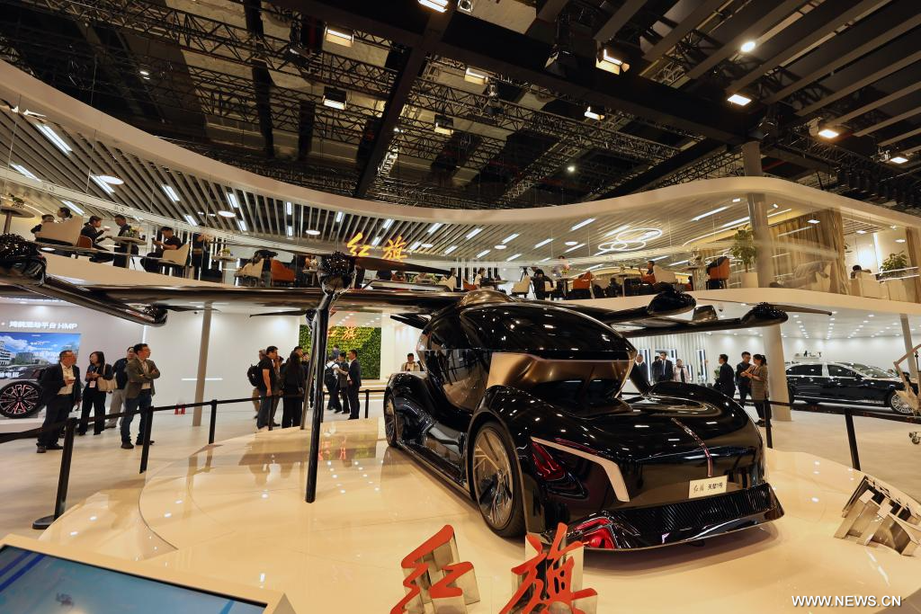 شانغهاي 24 أبريل 2025 (شينخوا) في الصورة الملتقطة يوم 23 أبريل 2025، سيارة "هونغتشي" الطائرة المعروضة خلال معرض شانغهاي الدولي الـ21 لصناعة السيارات في شانغهاي شرقي الصين. وانطلق المعرض، المعروف أيضا باسم "أوتو شانغهاي 2025"، يوم الأربعاء الماضي تحت عنوان "احتضان الابتكار وتمكين المستقبل"، ما جذب ما يقرب من 1000 شركة مشهورة من 26 دولة ومنطقة.
