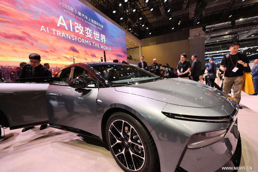 شانغهاي 24 أبريل 2025 (شينخوا) في الصورة الملتقطة يوم 23 أبريل 2025، زوار يتطلعون إلى سيارة من طراز "إكس بينغ جي 7" معروضة خلال معرض شانغهاي الدولي الـ21 لصناعة السيارات في شانغهاي شرقي الصين. وانطلق المعرض، المعروف أيضا باسم "أوتو شانغهاي 2025"، يوم الأربعاء الماضي تحت عنوان "احتضان الابتكار وتمكين المستقبل"، ما جذب ما يقرب من 1000 شركة مشهورة من 26 دولة ومنطقة.