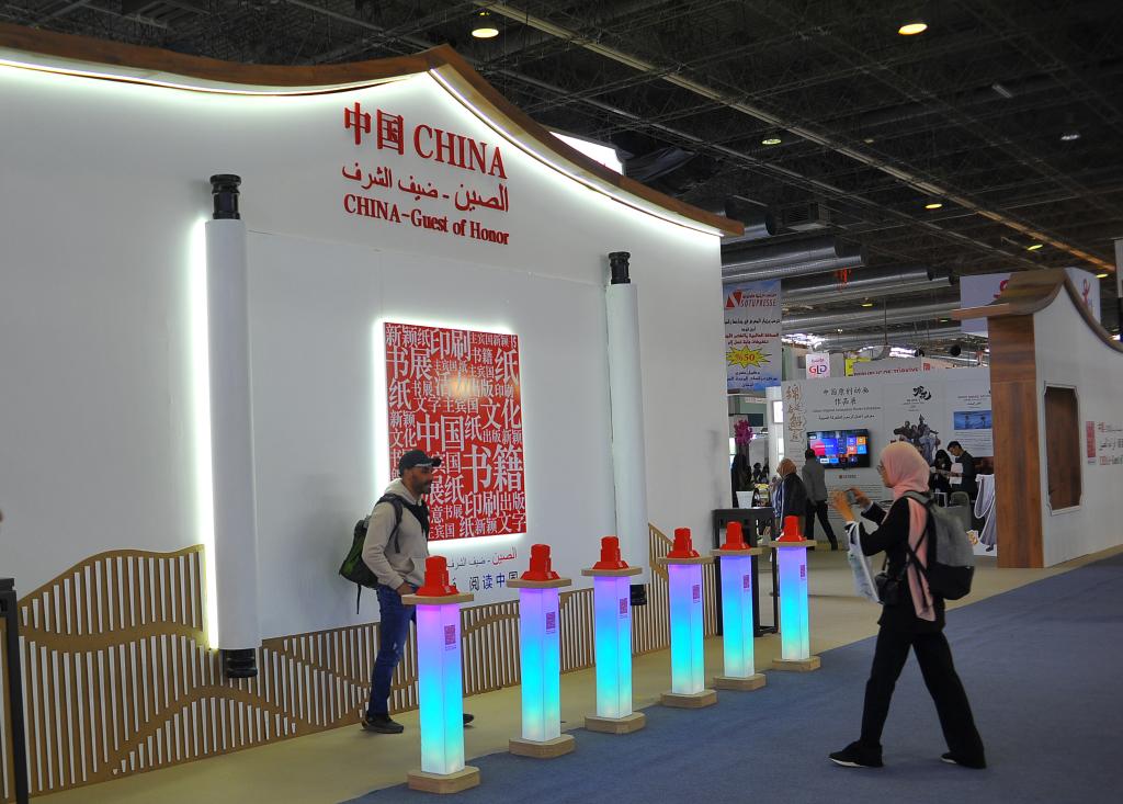 وتجمع عدد كبير من الزوار أمام معروضات دور النشر الصينية المختلفة، بالإضافة إلى المشاركة في ورشات للخط الصيني والطباعة على الخشب.