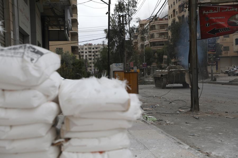 مركبة عسكرية سورية في بلدة أشرفية صحنايا بجنوب غرب العاصمة السورية دمشق في 30 أبريل 2025. (شينخوا)