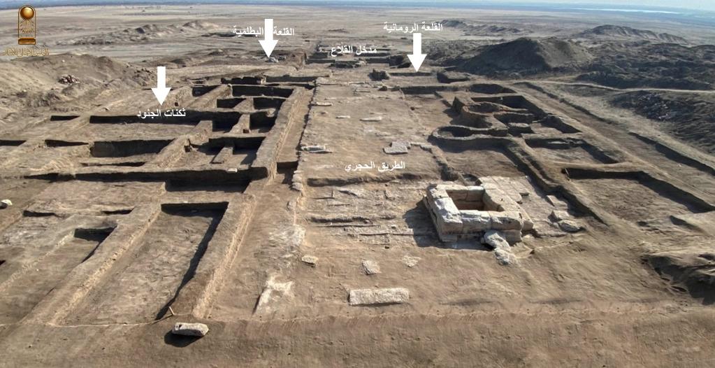 بدوره، أشار رئيس قطاع الآثار المصرية بالمجلس الأعلى للآثار محمد عبد البديع، إلى أن البعثة عثرت كذلك على طريق بعرض 11 مترا وطول يتجاوز 100 متر، مرصوف ببلاطات من الحجر الجيري، يمتد من خارج البوابة الشرقية للقلعة الرومانية ويصل إلى قلب الموقع.