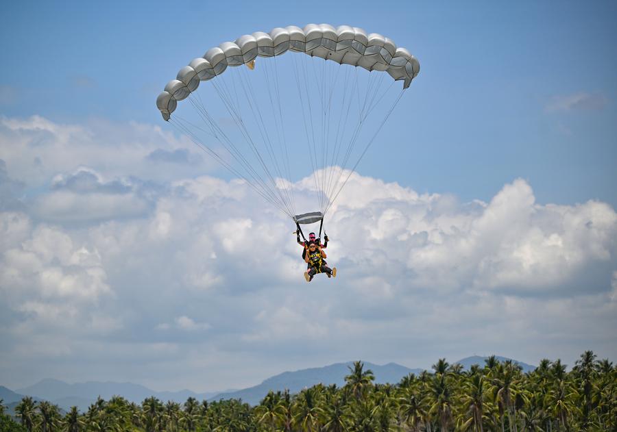سانيا 5 مايو 2025 (شينخوا) أصبحت أنشطة سياحة الارتفاعات المنخفضة مثل الطيران الشراعي والقفز بالمظلات من الأنشطة السياحية الرائجة بين السياح في مقاطعة هاينان بجنوبي الصين خلال عطلة عيد العمال.■