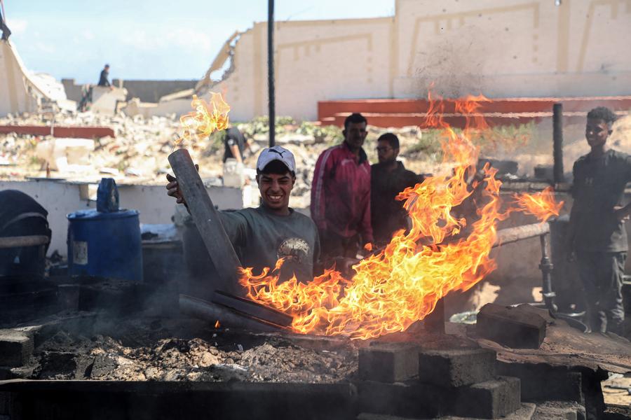 سعد الدين أبو عجوة (45 عاما) نازح من حي الشجاعية، قال لوكالة أنباء ((شينخوا))، إنه أنشأ هذه الورشة بالتعاون مع أقاربه وأصدقائه، معتمدا على أدوات يدوية ومواد خام يجري جمعها من بين الركام.