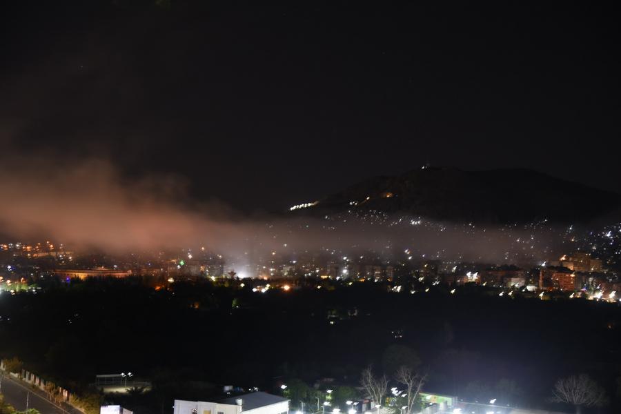 دخان يتصاعد من جبل قاسيون إثر غارة جوية إسرائيلية على دمشق، سوريا، في 3 مايو 2025. (شينخوا)