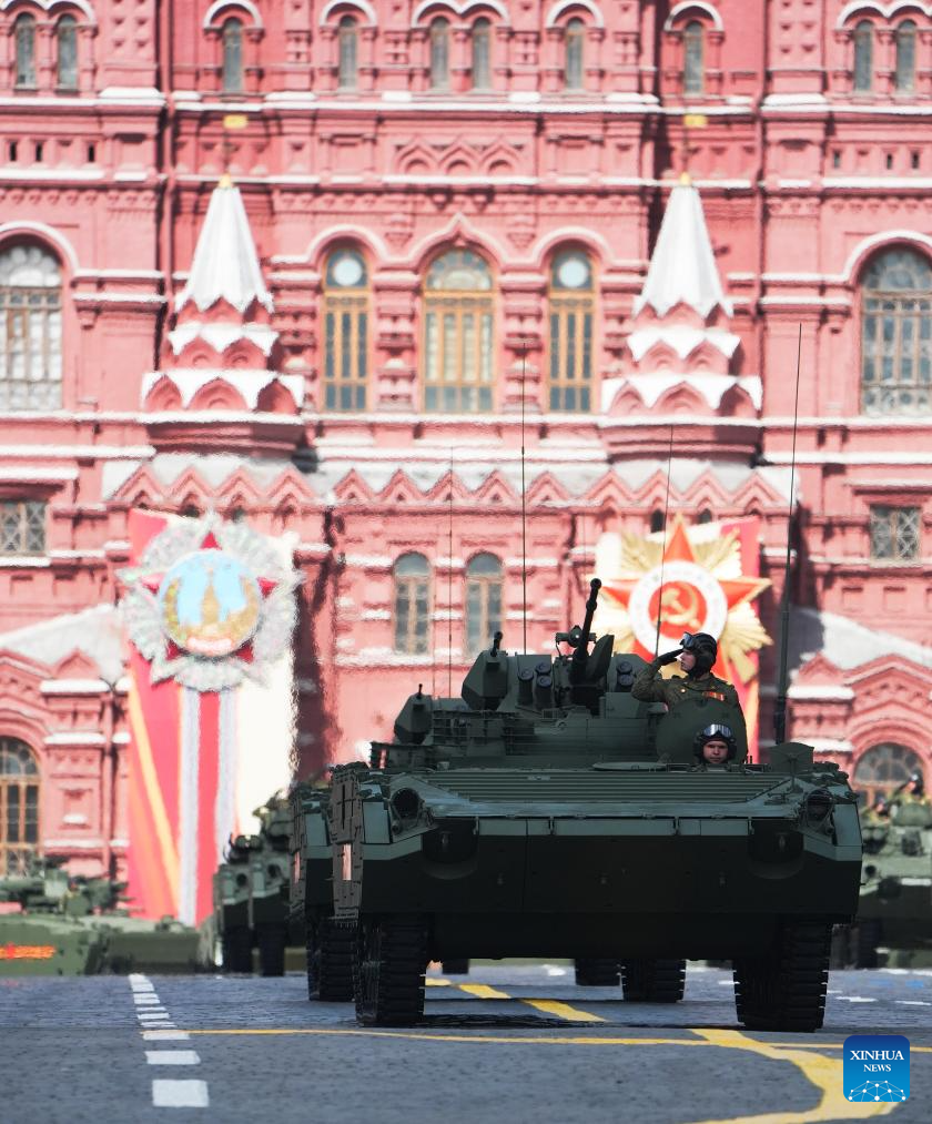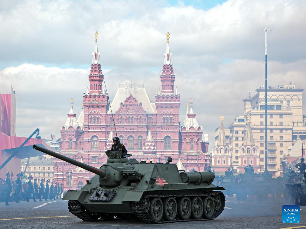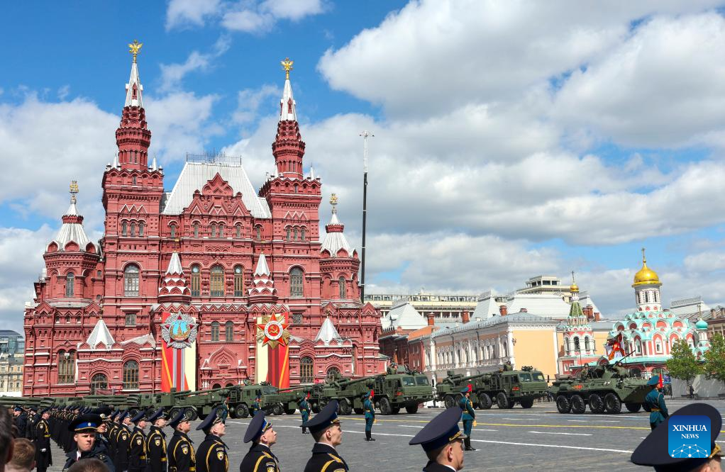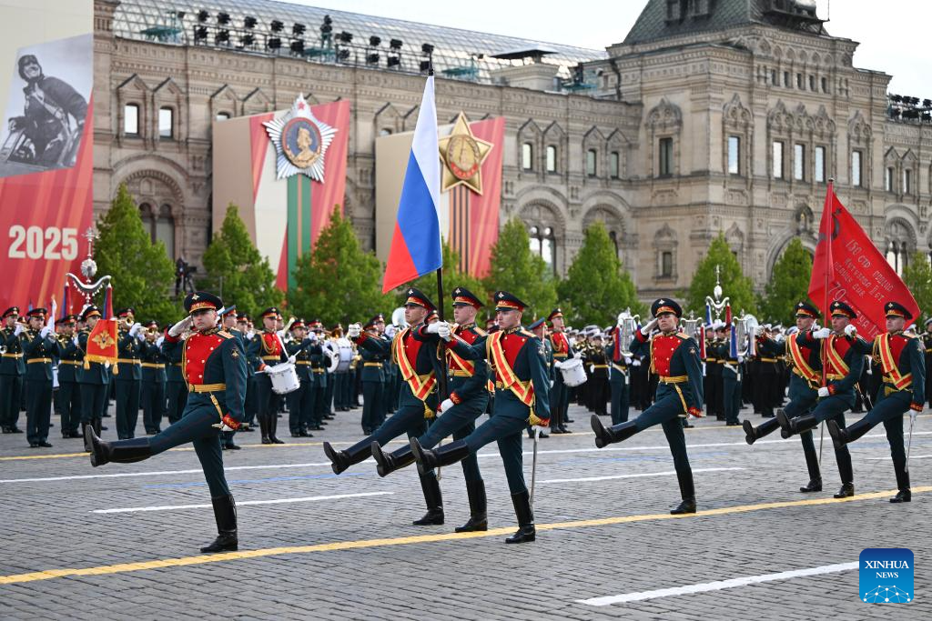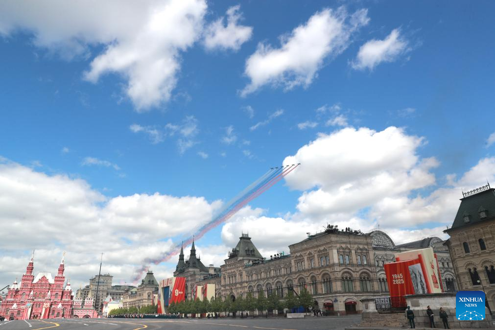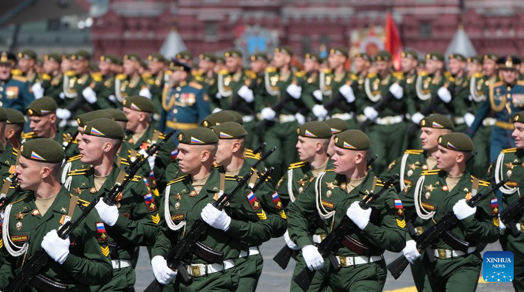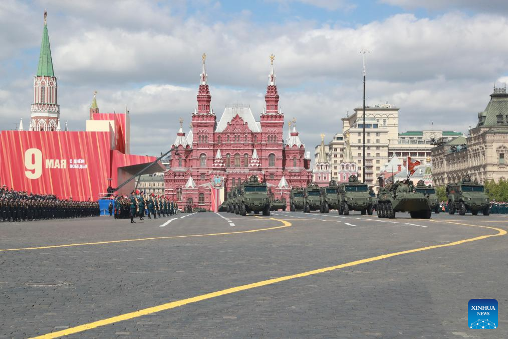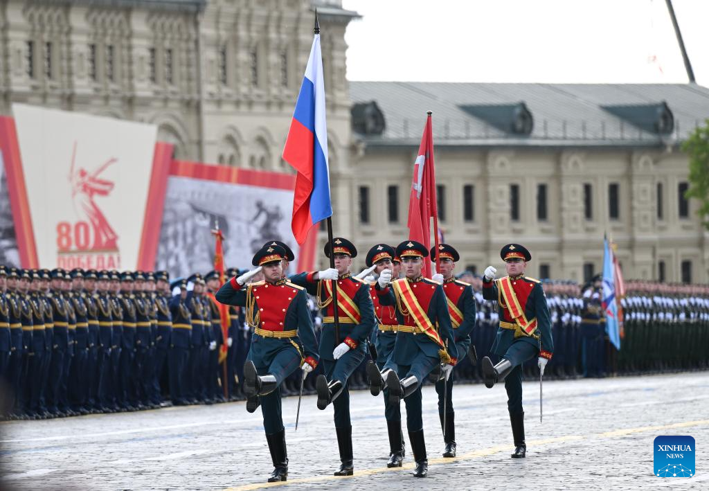 موسكو 9 مايو 2025 (شينخوا) أقامت روسيا اليوم (الجمعة) عرضها السنوي بمناسبة الاحتفال بيوم النصر بتنظيم عرض عسكري ضخم في الساحة الحمراء، لإحياء الذكرى الـ80 لانتصار الاتحاد السوفيتي في الحرب الوطنية العظمى.