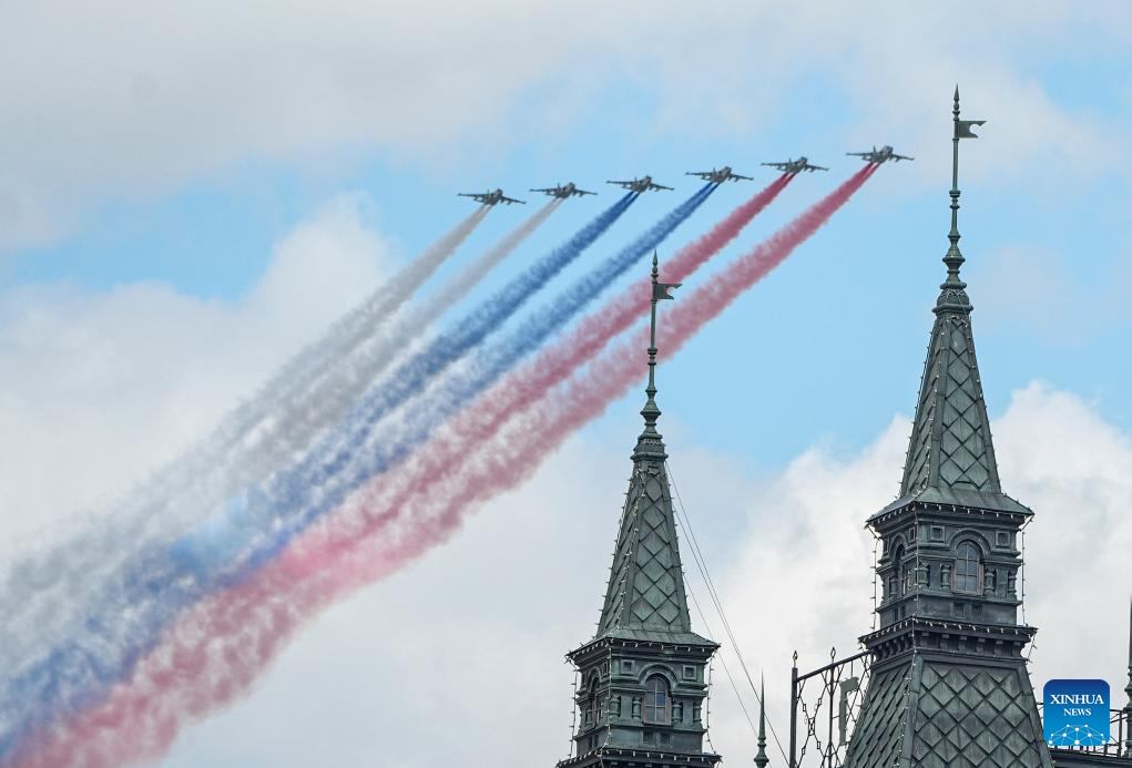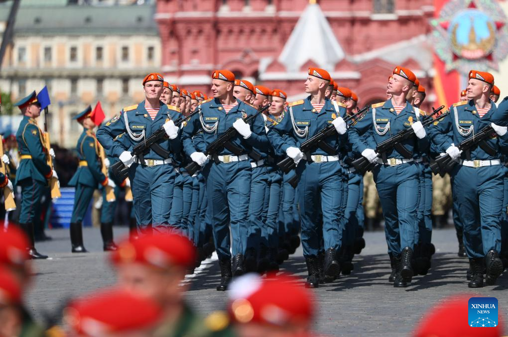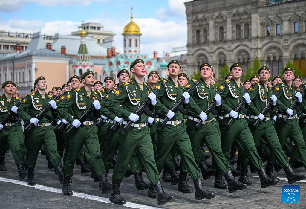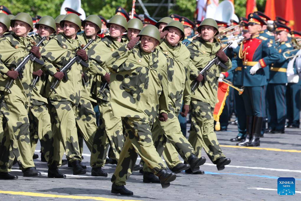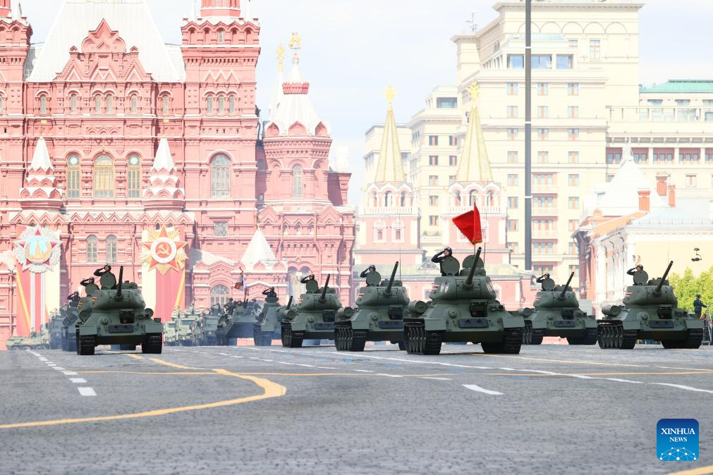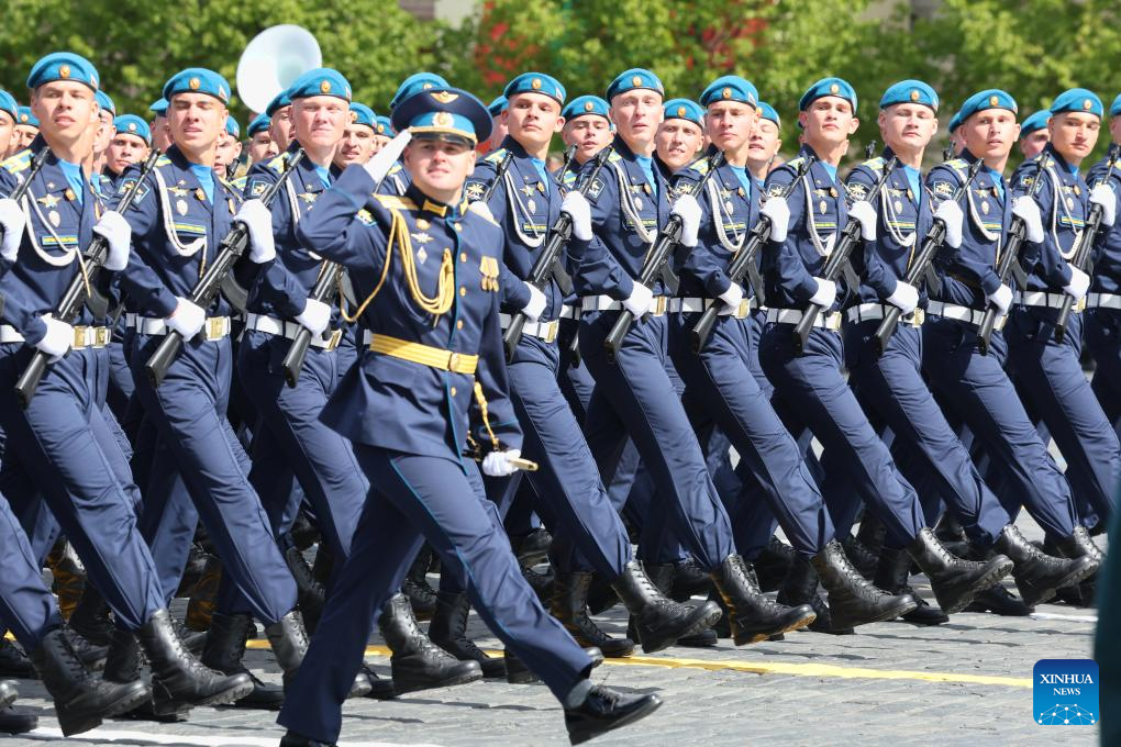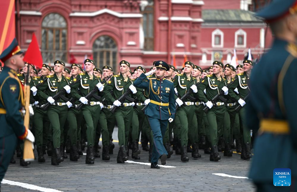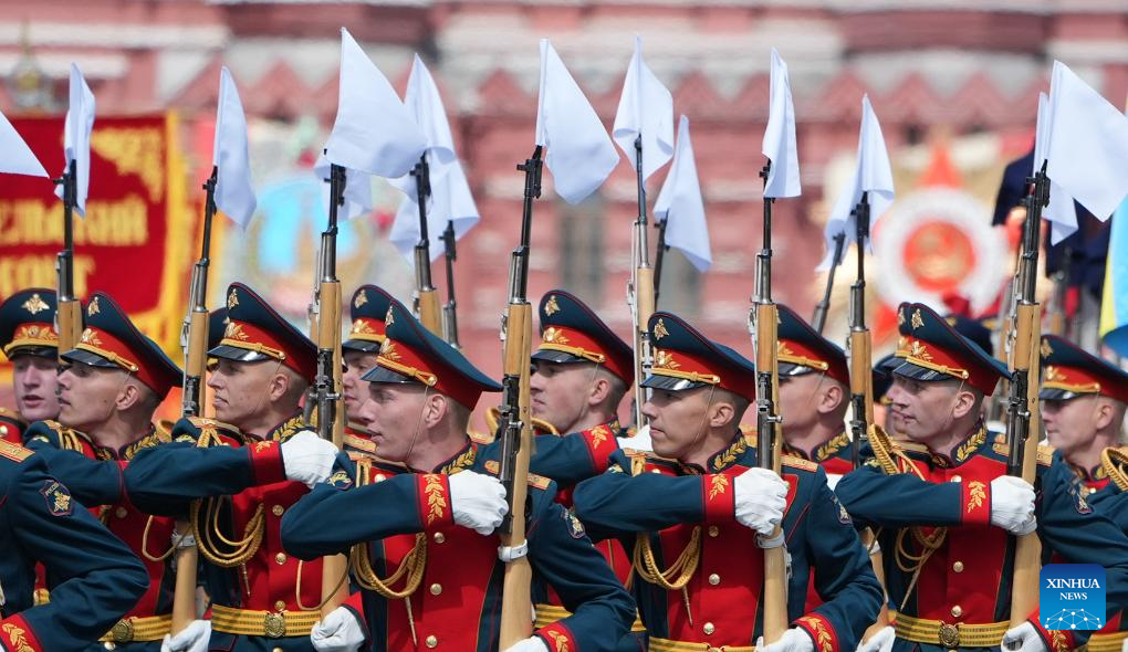 موسكو 9 مايو 2025 (شينخوا) أقامت روسيا اليوم (الجمعة) عرضها السنوي بمناسبة الاحتفال بيوم النصر بتنظيم عرض عسكري ضخم في الساحة الحمراء، لإحياء الذكرى الـ80 لانتصار الاتحاد السوفيتي في الحرب الوطنية العظمى.