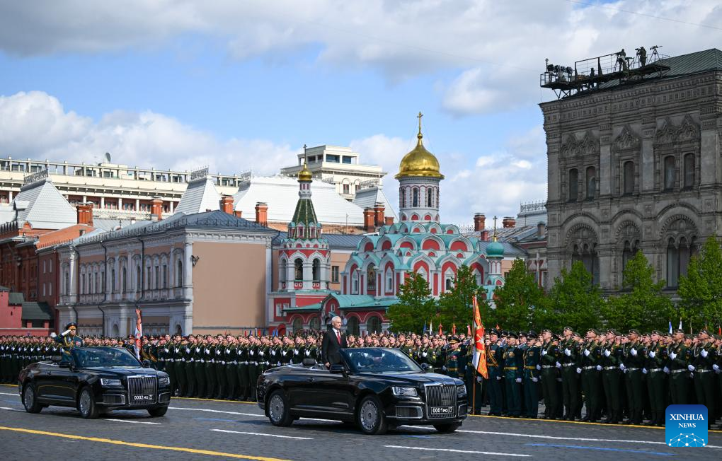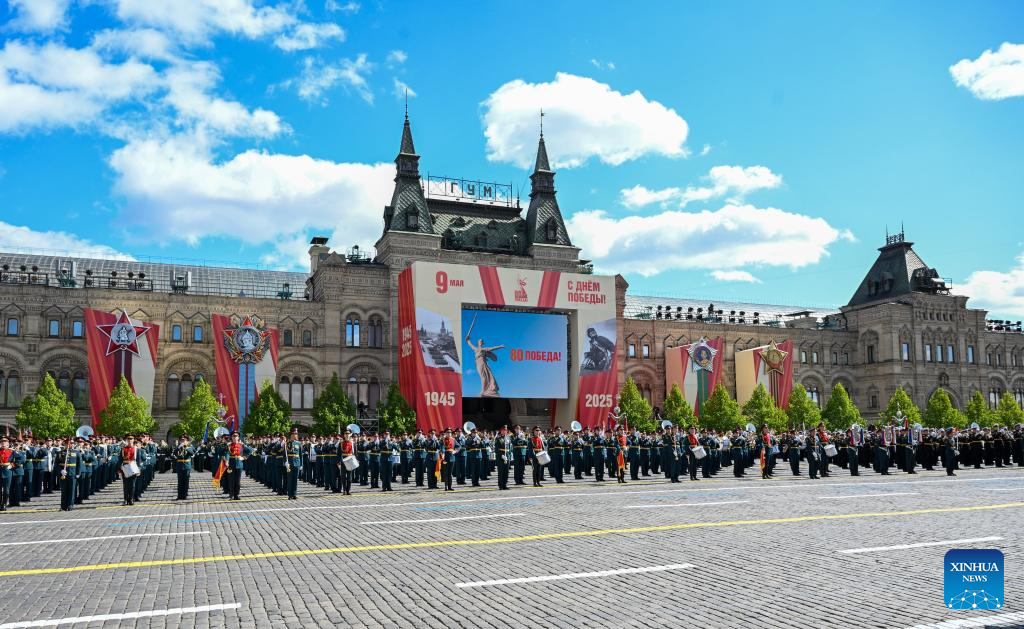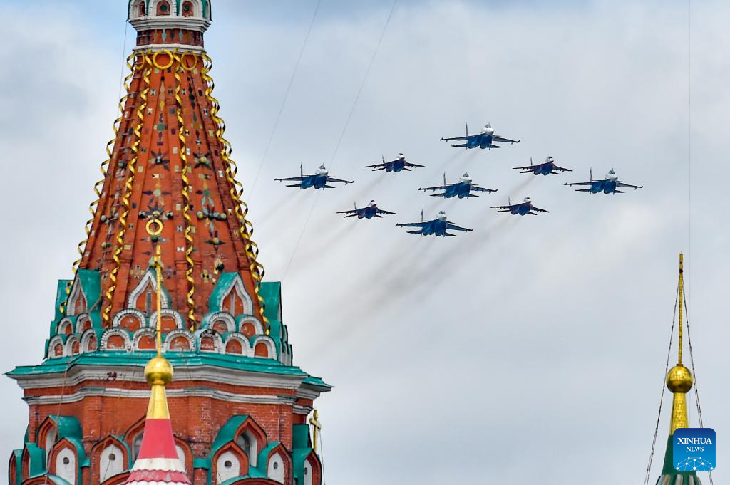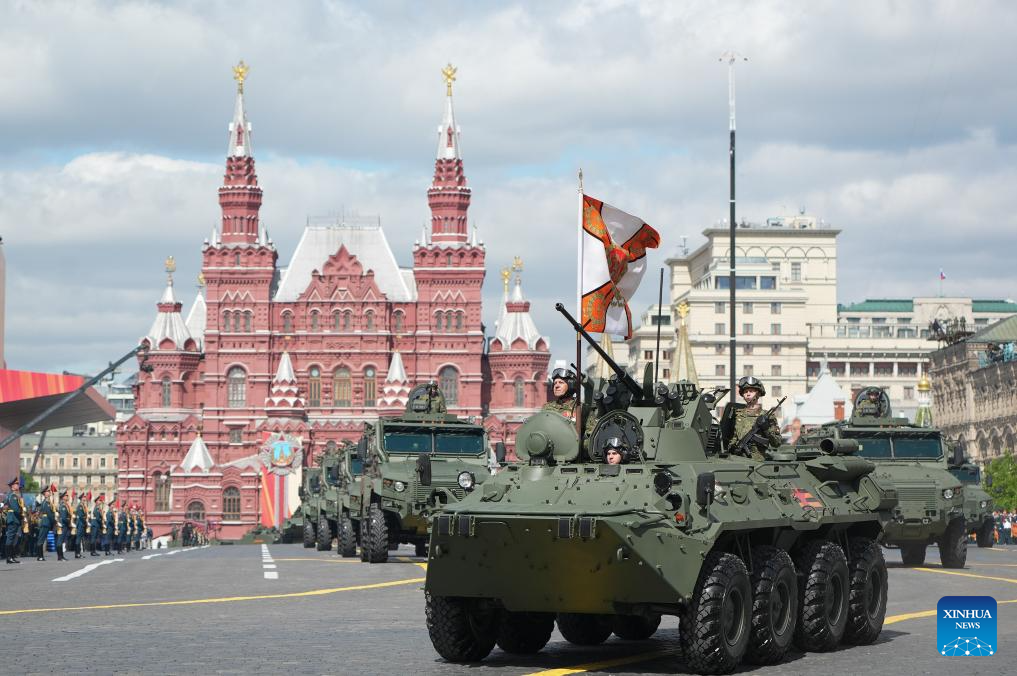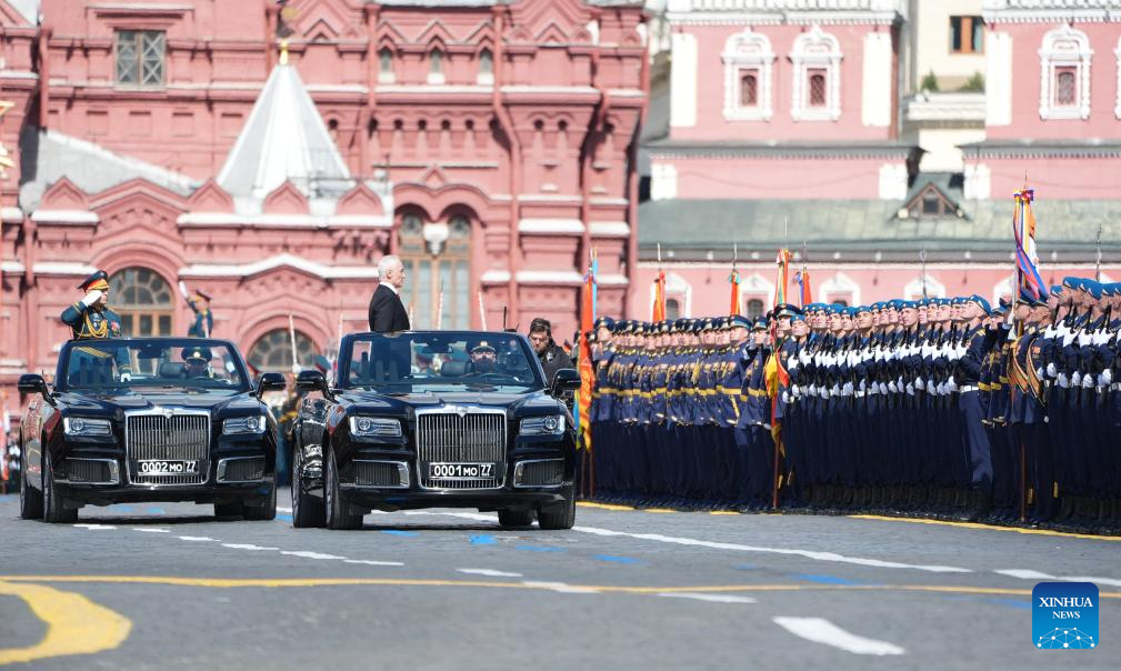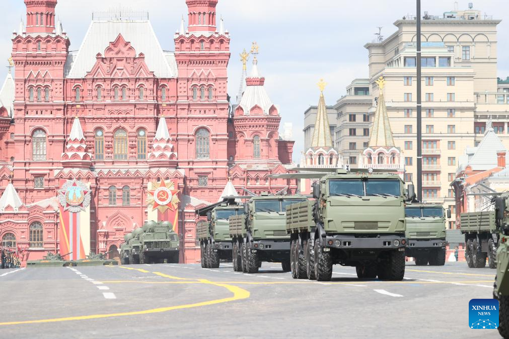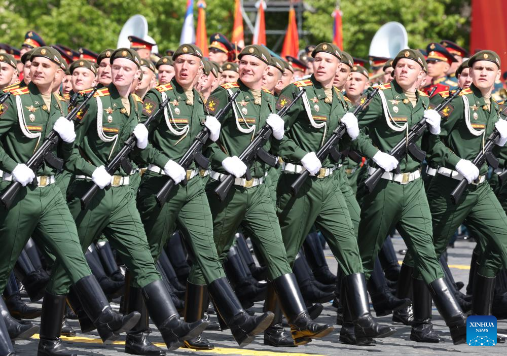 موسكو 9 مايو 2025 (شينخوا) أقامت روسيا اليوم (الجمعة) عرضها السنوي بمناسبة الاحتفال بيوم النصر بتنظيم عرض عسكري ضخم في الساحة الحمراء، لإحياء الذكرى الـ80 لانتصار الاتحاد السوفيتي في الحرب الوطنية العظمى.