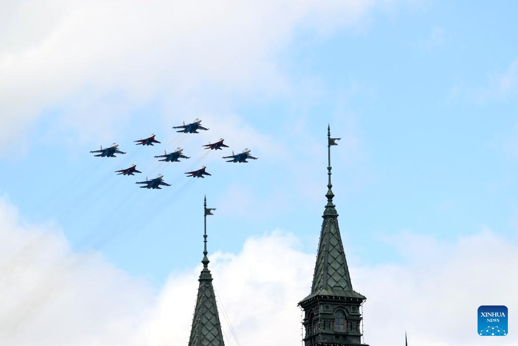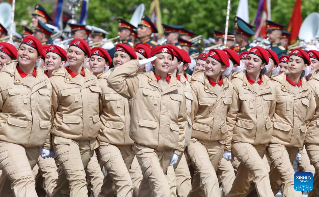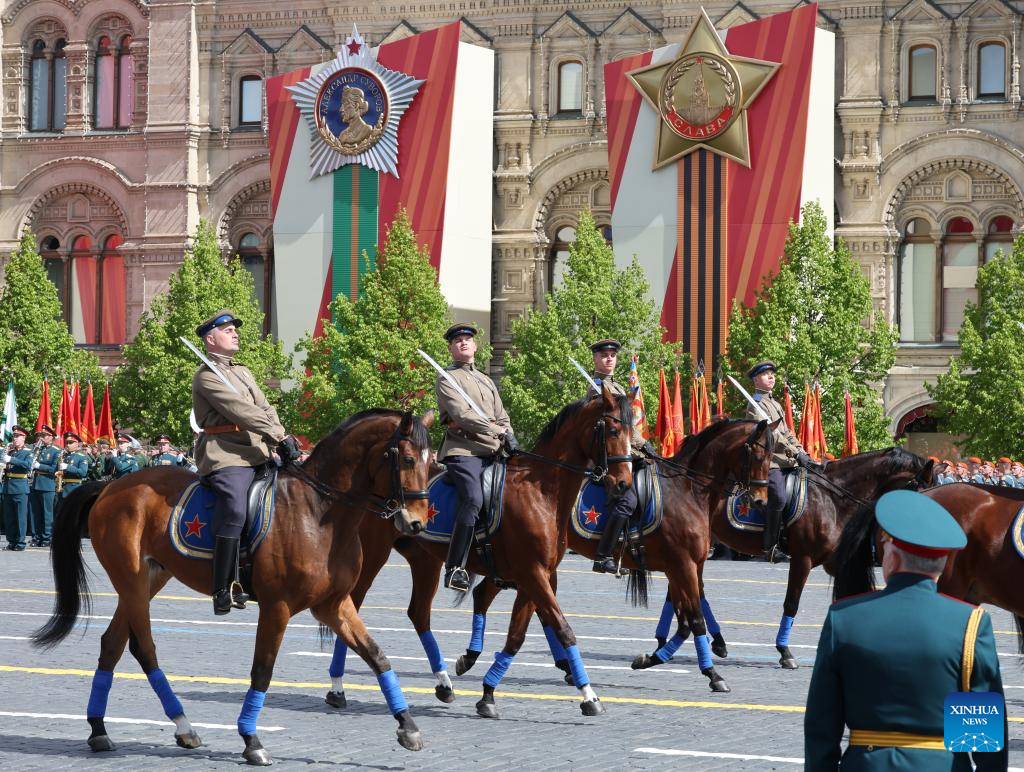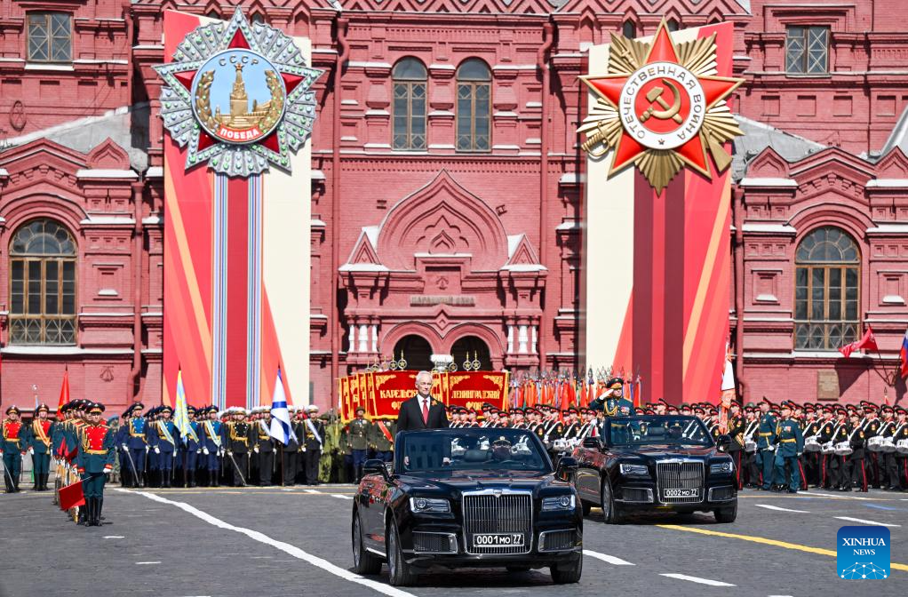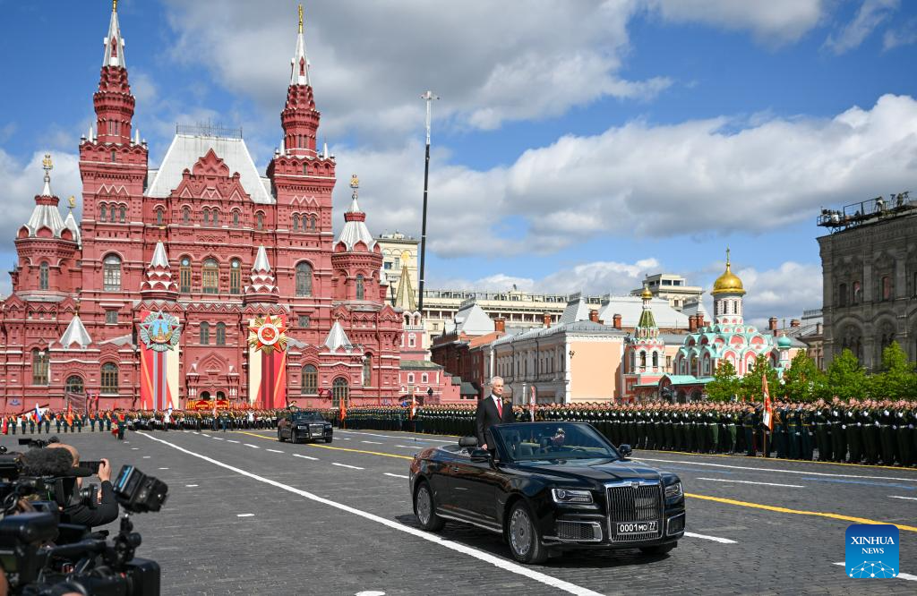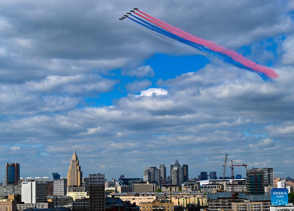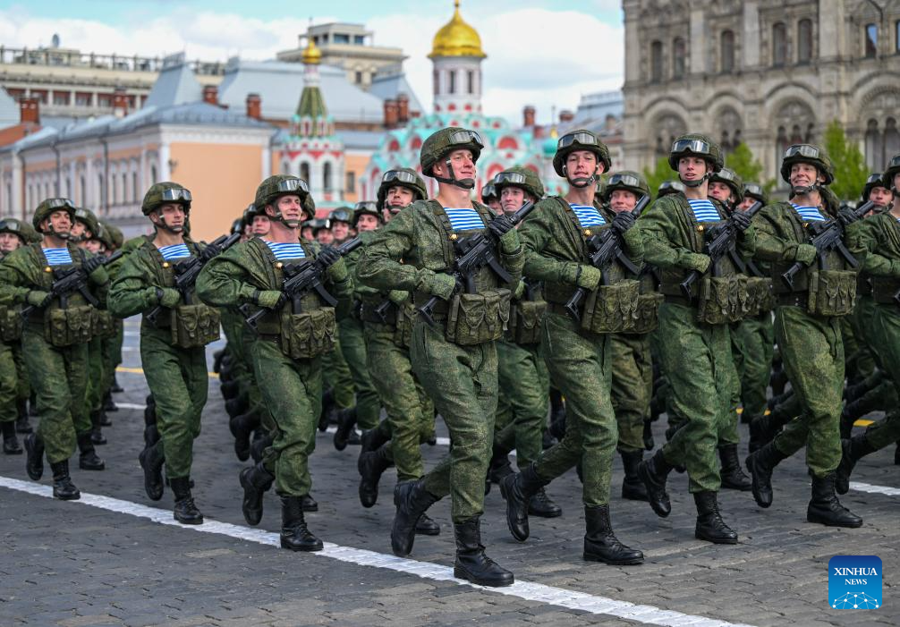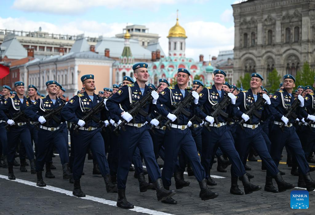 موسكو 9 مايو 2025 (شينخوا) أقامت روسيا اليوم (الجمعة) عرضها السنوي بمناسبة الاحتفال بيوم النصر بتنظيم عرض عسكري ضخم في الساحة الحمراء، لإحياء الذكرى الـ80 لانتصار الاتحاد السوفيتي في الحرب الوطنية العظمى.