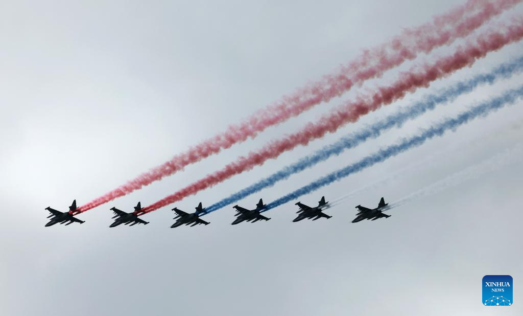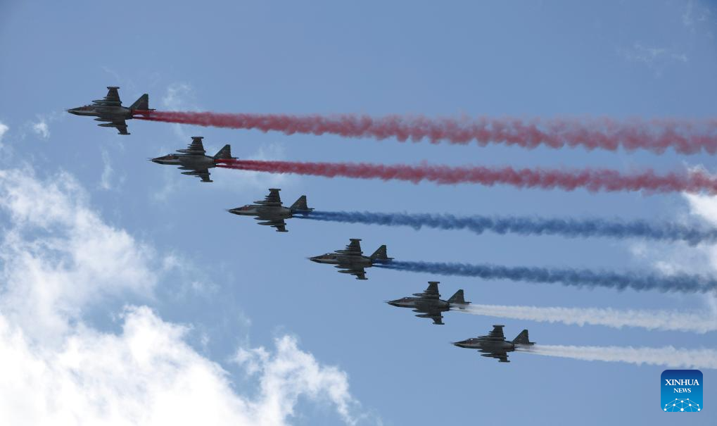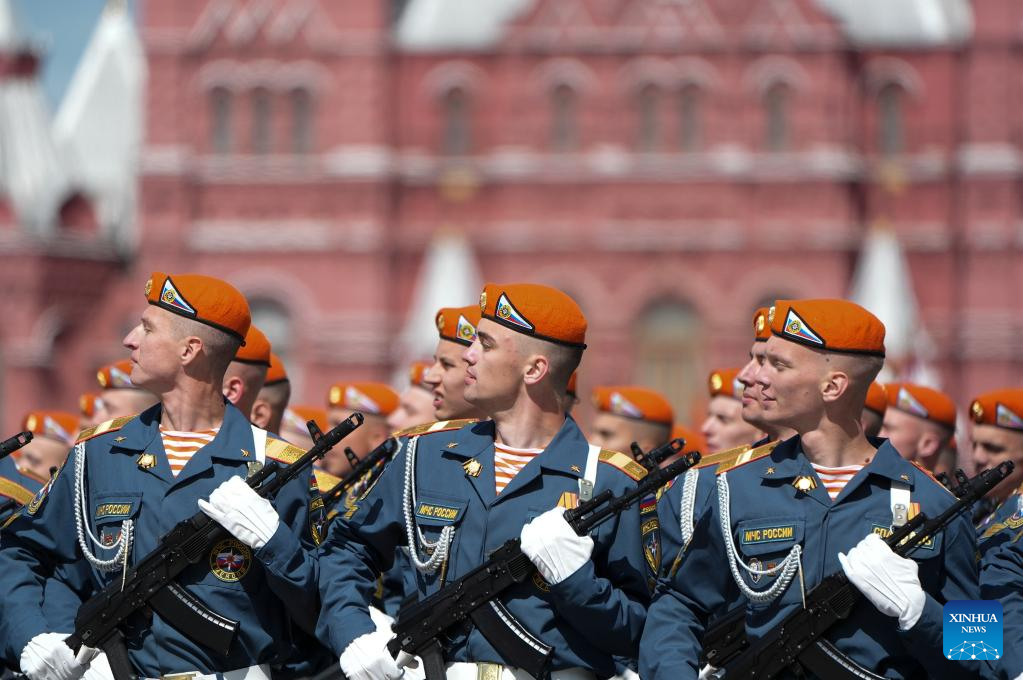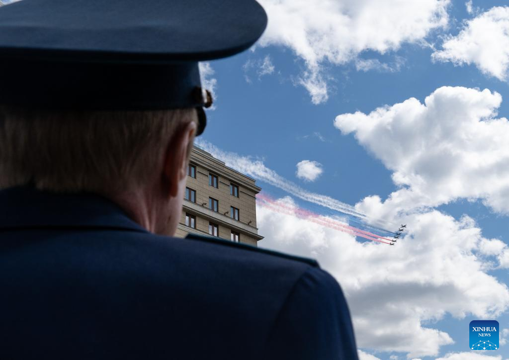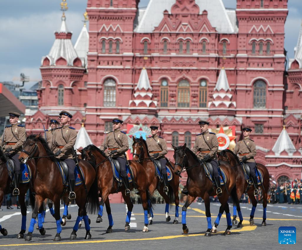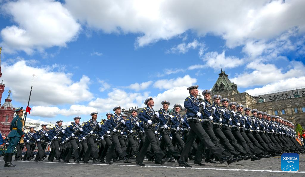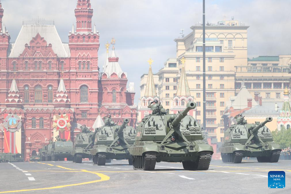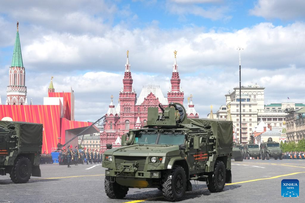 موسكو 9 مايو 2025 (شينخوا) أقامت روسيا اليوم (الجمعة) عرضها السنوي بمناسبة الاحتفال بيوم النصر بتنظيم عرض عسكري ضخم في الساحة الحمراء، لإحياء الذكرى الـ80 لانتصار الاتحاد السوفيتي في الحرب الوطنية العظمى.