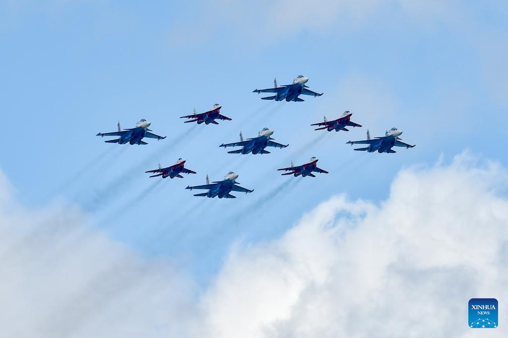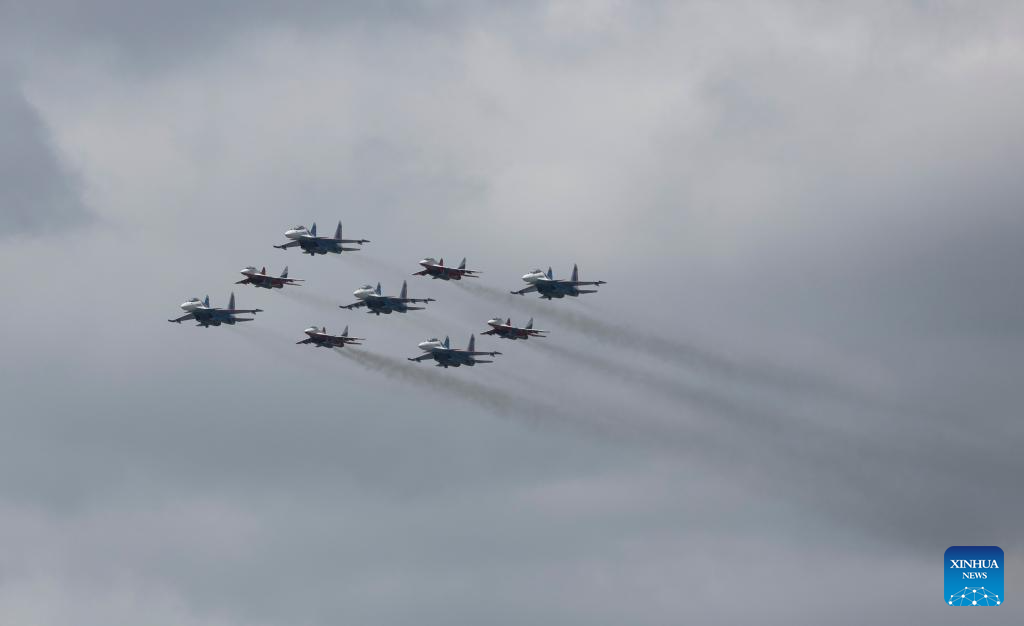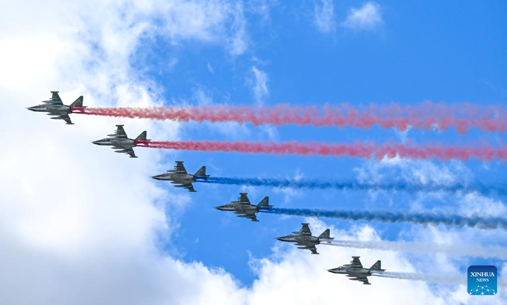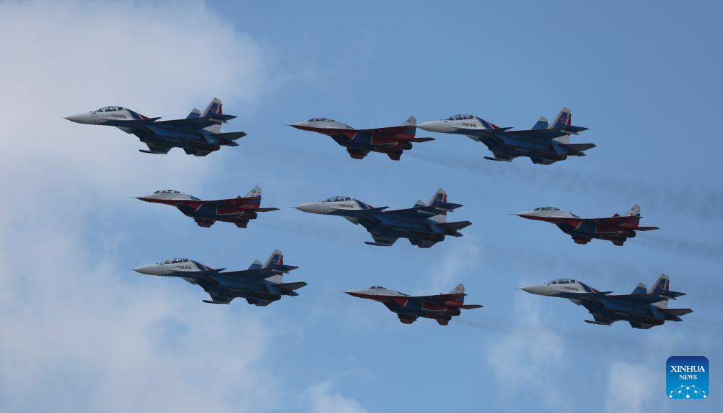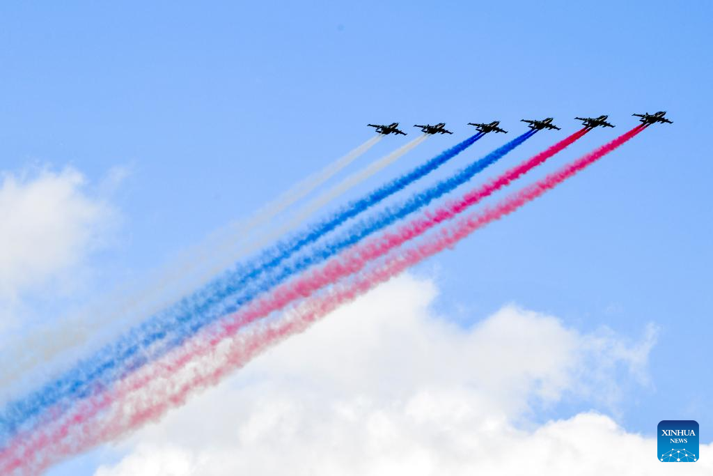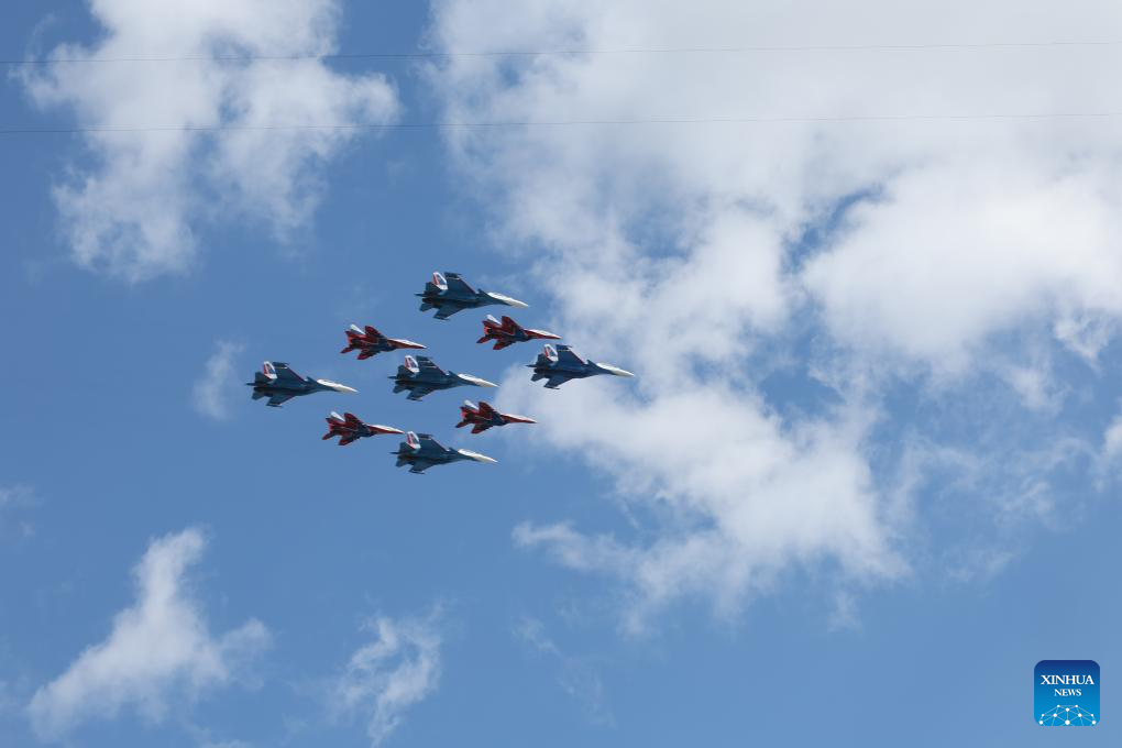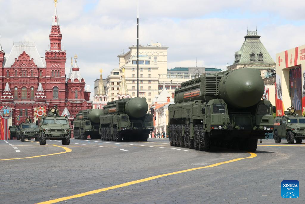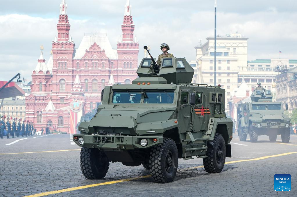 موسكو 9 مايو 2025 (شينخوا) أقامت روسيا اليوم (الجمعة) عرضها السنوي بمناسبة الاحتفال بيوم النصر بتنظيم عرض عسكري ضخم في الساحة الحمراء، لإحياء الذكرى الـ80 لانتصار الاتحاد السوفيتي في الحرب الوطنية العظمى.