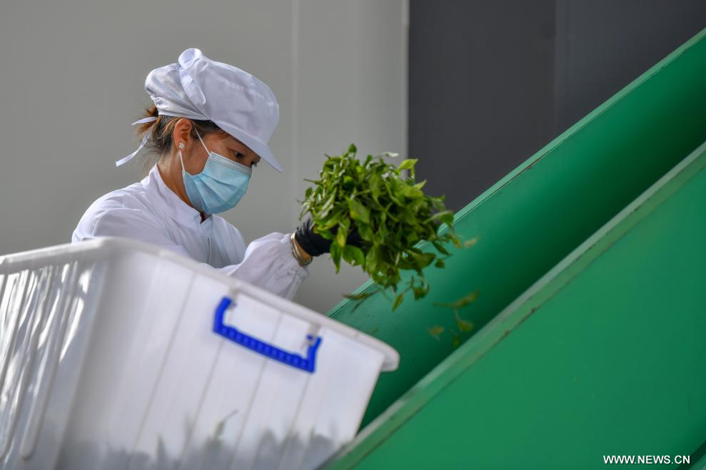 ماليبوه 11 مايو 2025 (شينخوا) في الصورة الملتقطة يوم 8 مايو 2025، عاملة تعمل في مصنع لمعالجة الشاي في بلدة منغدونغ بمحافظة ماليبوه في مقاطعة يوننان بجنوب غربي الصين.